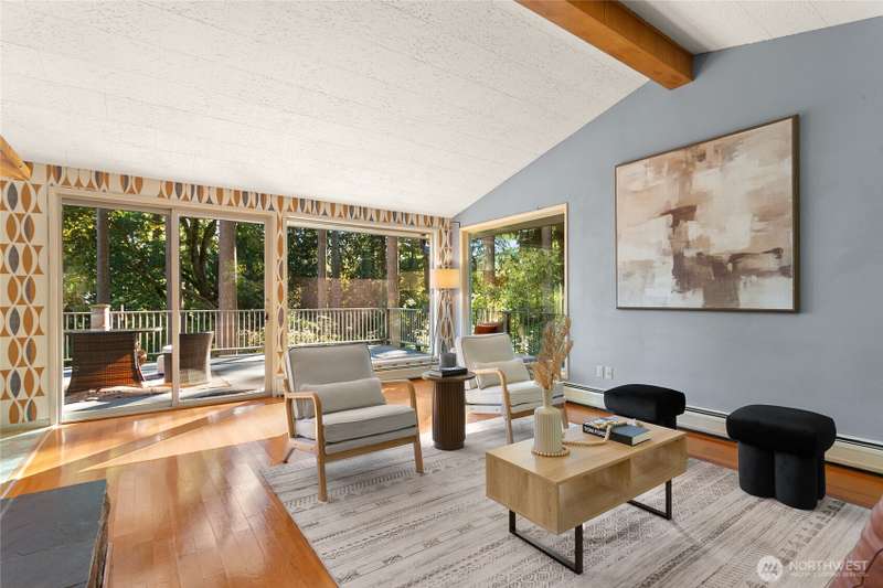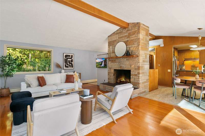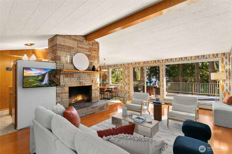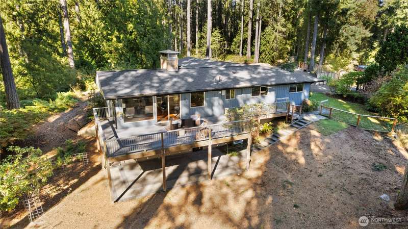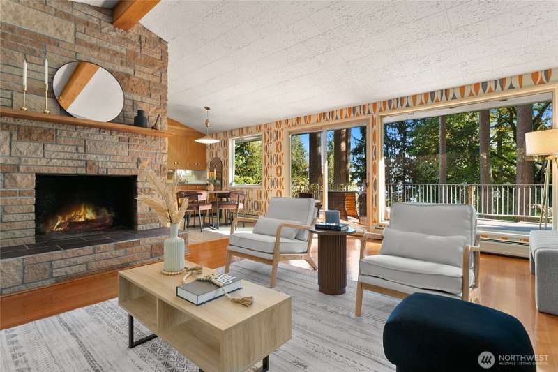 Experience Cooper Point living at its finest. This timeless mid-century modern home offers stunning Puget Sound and Mt. Rainier views, surrounded by 2.5 acres of private Northwest beauty. Enjoy peaceful walking trails, mature evergreens, and spacious patios perfect for entertaining or quiet mornings. Inside, sunlight fills the open living spaces with large windows, fireplaces, and mid-century character throughout. Ownership shows with a new roof, gutters w/ leaf guards, full septic system, fresh paint, new AC system, and new carpet. The property includes a 2-car garage + carport, RV parking, and room to garden or play. Minutes from shopping, dining, and the waterfront. Your own private retreat, move-in ready and waiting to welcome you home.