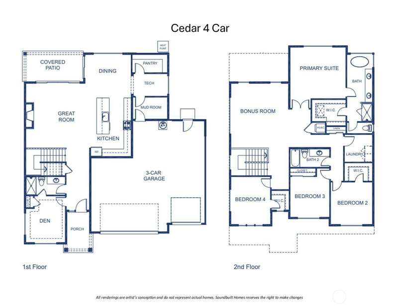 Welcome to The Cedar at The Summit at Steel Lake—the first release in this new Soundbuilt Homes community! This 3,019 sq. ft. home offers 5 bedrooms including a main floor guest suite, plus a spacious upstairs bonus room. Rare 4-car garage and a 7,204 sq. ft. lot—larger than most new construction. Features include a covered patio, fenced yard, and energy-efficient heat pump. Builder is offering a generous $18,000 buyer incentive. Don’t miss your chance to be among the first to own in this desirable neighborhood! Home under construction, images not actual home, call for details.