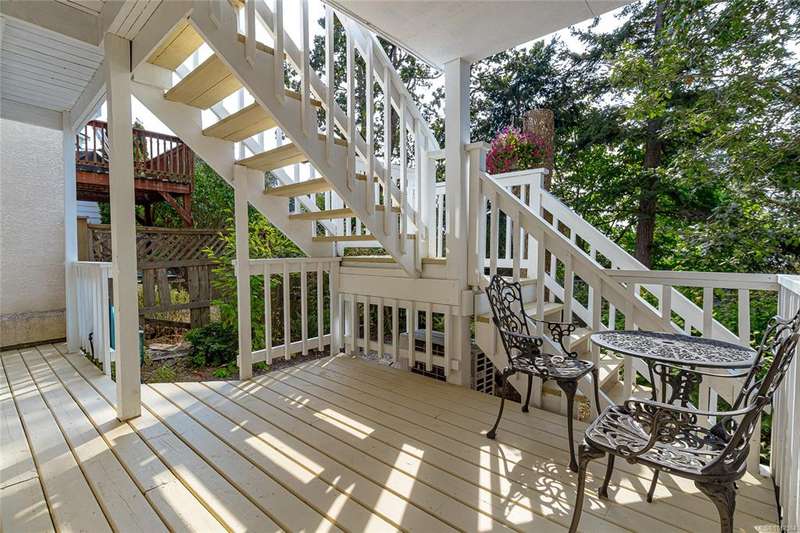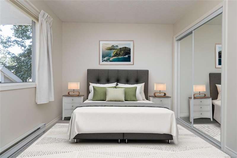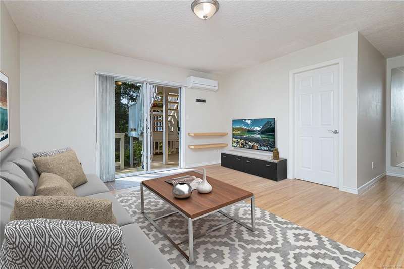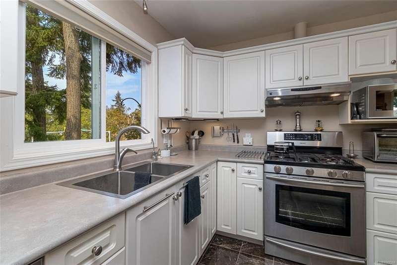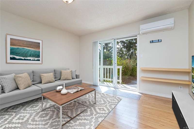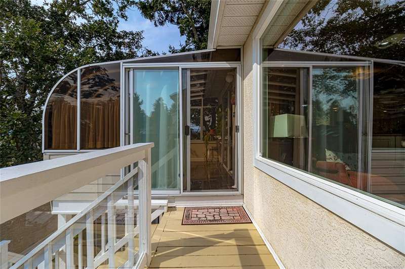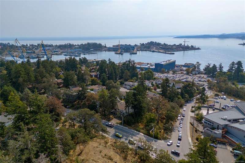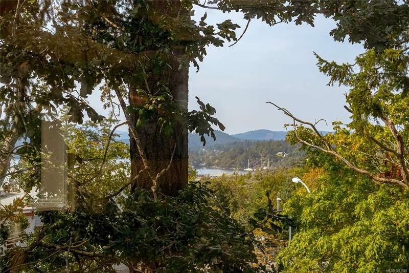 This bright & beautifully updated 1993-built 3 bed 3 bath duplex with a 1 bedroom suite offers pretty ocean views of Esquimalt Harbour and a spacious, open layout. Enjoy year-round views from the principal rooms or in-floor heated sunroom. The main level features bamboo hardwood floors, updated lighting & a renovated kitchen with stainless appliances and contemporary fixtures. The spacious primary suite includes a refreshed 4-pce ensuite. Major updates include a high-efficiency mini-split heat pump with zoned controls, new flooring, fully renovated bathrooms, energy-efficient window coverings & upgraded plumbing. The carport was converted to a smart garage, complemented by a custom storage shed, native landscaping with drip irrigation & a fully fenced yard. Set back from the road and framed by evergreens, this no-fee strata home is close to parks, trails, shopping, transit & downtown plus offers a mortgage-helper! Enjoy the end of your commute to work and move in before Christmas!