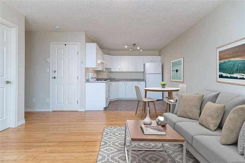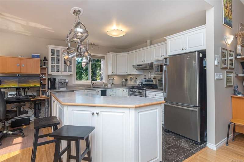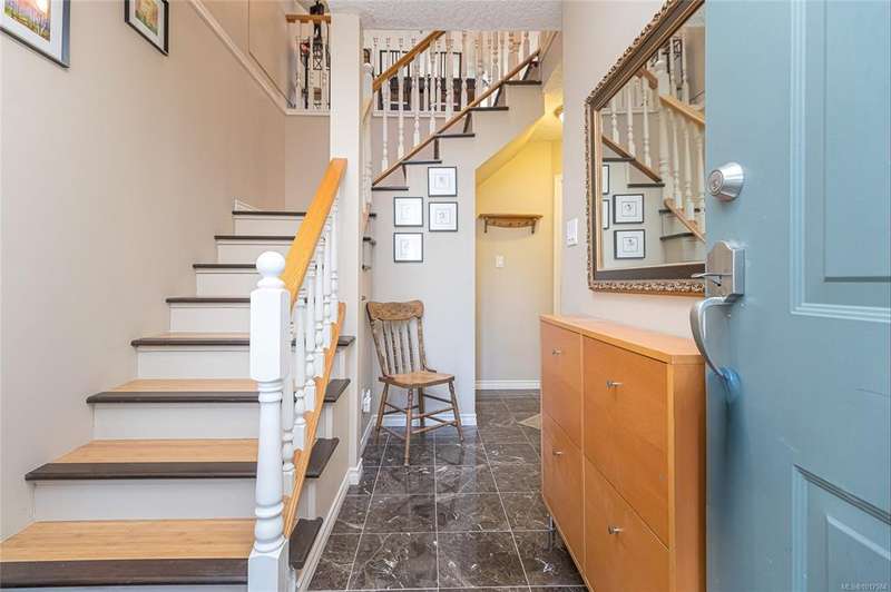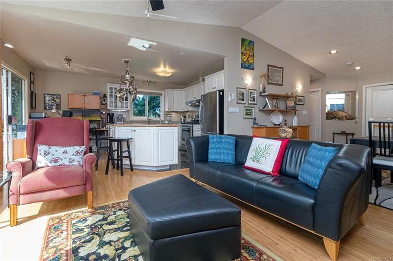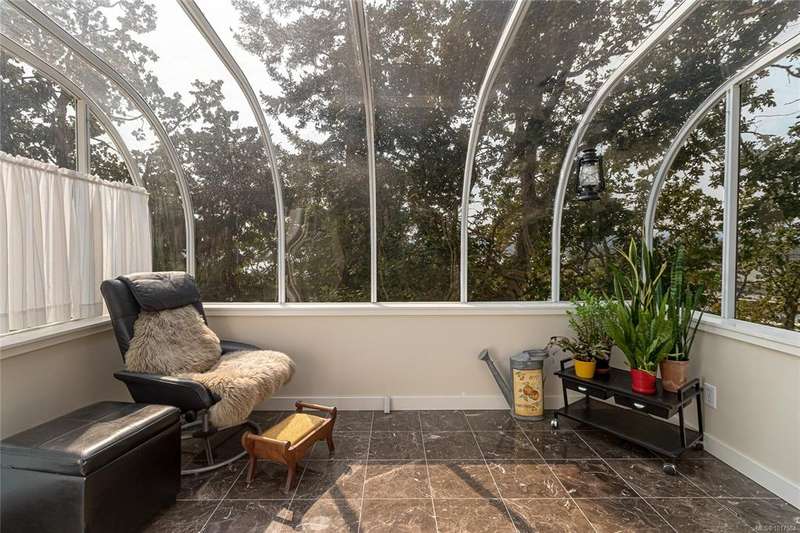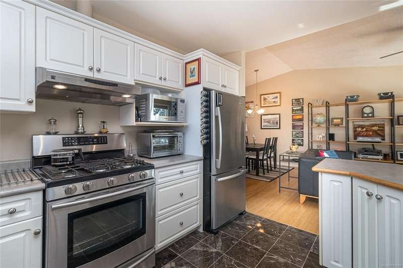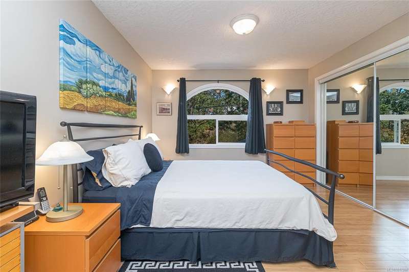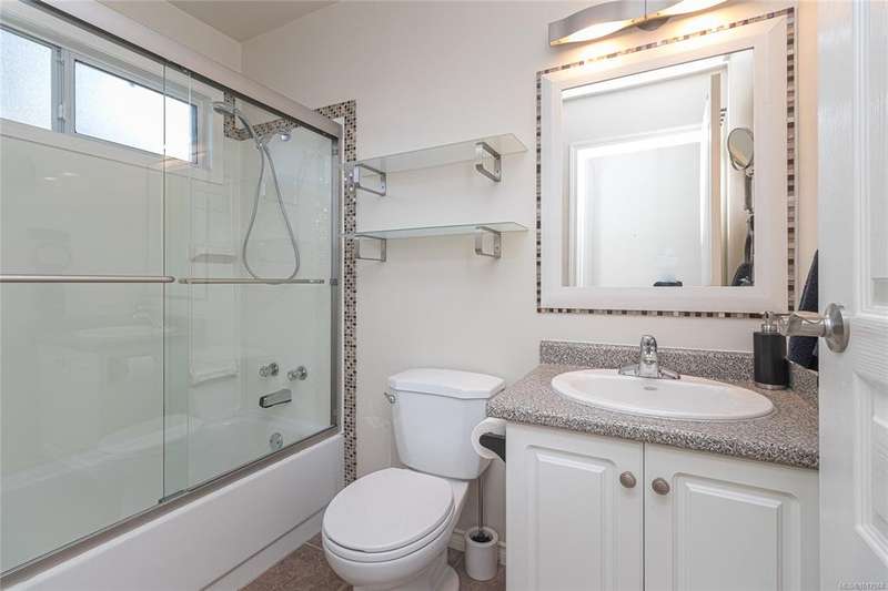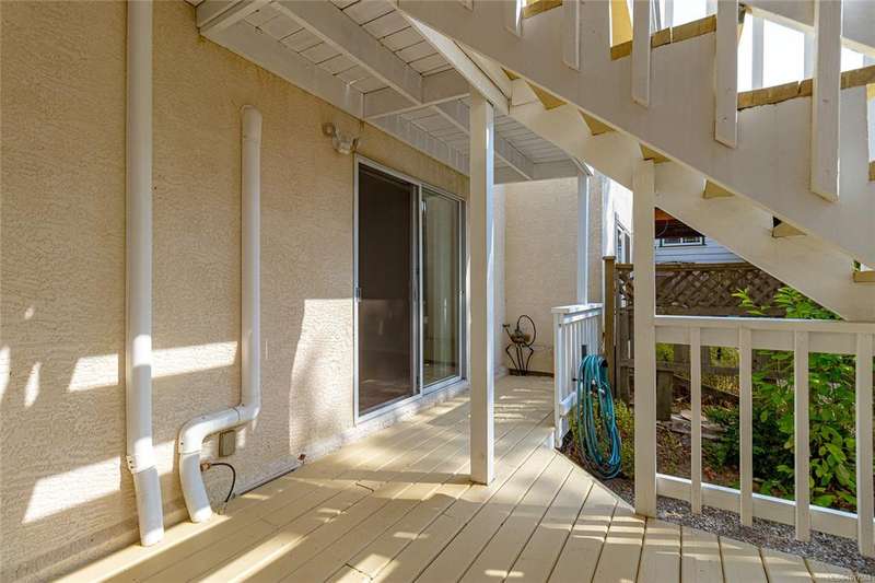 This bright & beautifully updated 1993-built 3 bed 3 bath duplex with a 1 bedroom suite offers pretty ocean views of Esquimalt Harbour and a spacious, open layout. Enjoy year-round views from the principal rooms or in-floor heated sunroom. The main level features bamboo hardwood floors, updated lighting & a renovated kitchen with stainless appliances and contemporary fixtures. The spacious primary suite includes a refreshed 4-pce ensuite. Major updates include a high-efficiency mini-split heat pump with zoned controls, new flooring, fully renovated bathrooms, energy-efficient window coverings & upgraded plumbing. The carport was converted to a smart garage, complemented by a custom storage shed, native landscaping with drip irrigation & a fully fenced yard. Set back from the road and framed by evergreens, this no-fee strata home is close to parks, trails, shopping, transit & downtown plus offers a mortgage-helper! Enjoy the end of your commute to work and move in before Christmas!