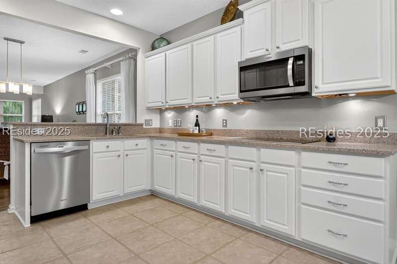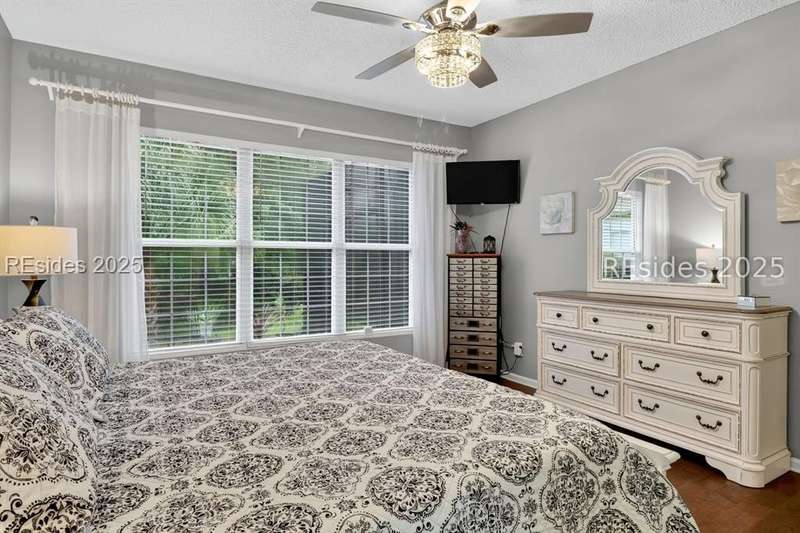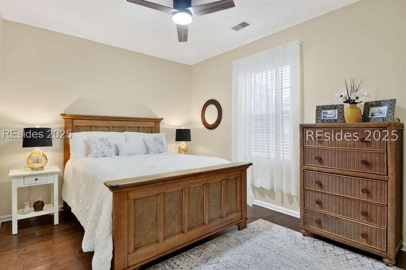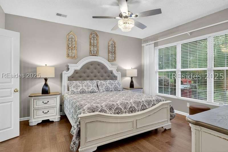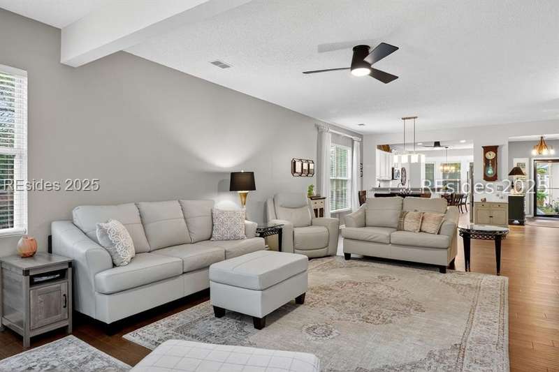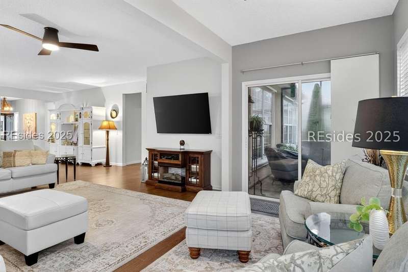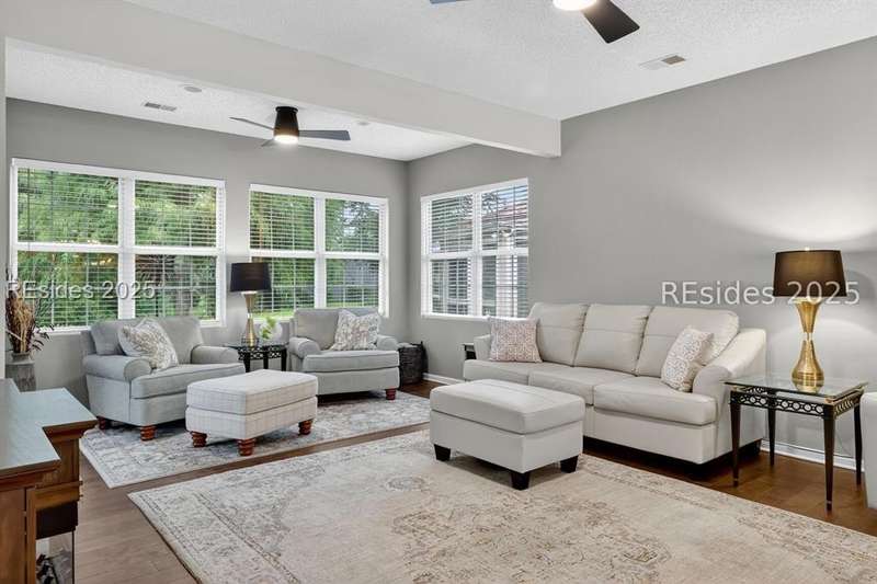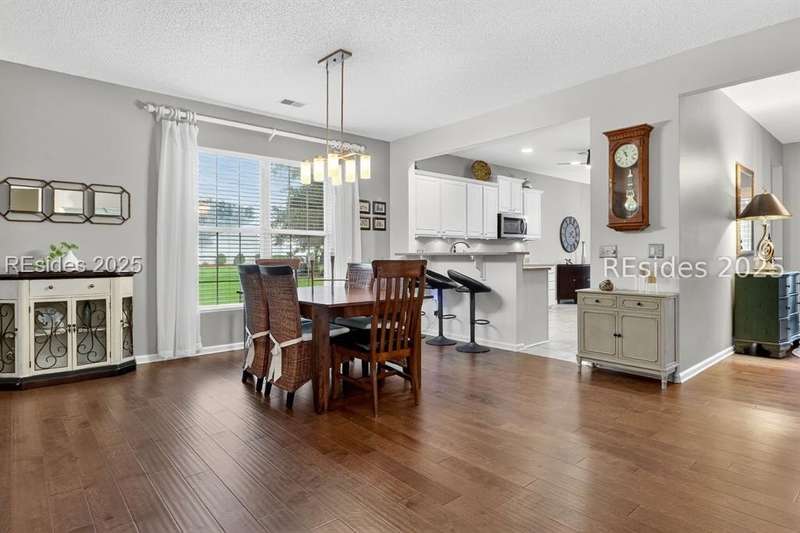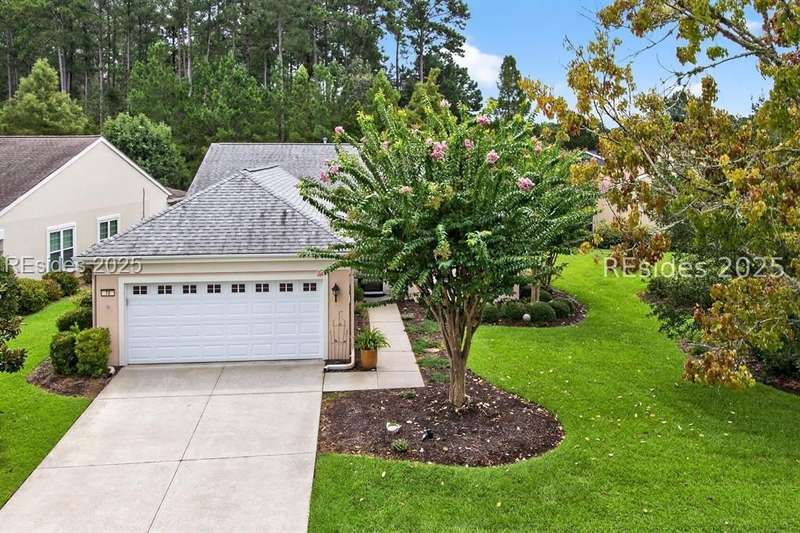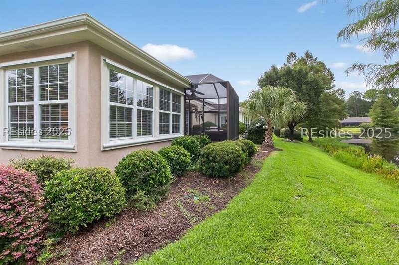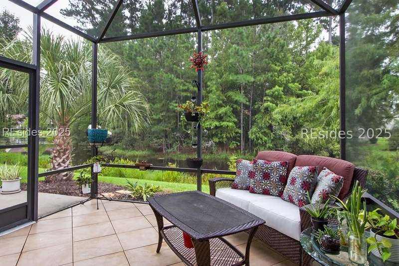 Step into this immaculate Pelican model home located in Sun City Hilton Head. Enjoy a serene lagoon view from your private screened patio. Filled with natural light, the open layout features gorgeous wood floors throughout with tile in the kitchen and baths for easy living. The spacious eat-in kitchen is a showstopper with a large, bayed eat-in area, center island, pull-out shelves in lower cabinets, quartz counter tops, breakfast bar, induction electric cooktop, true double ovens (one convection), plus other updated appliances! A formal dining area flows seamlessly into the "expanded" great room, creating the ideal setting for entertaining or quiet evenings at home. The private owner's suite offers a huge walk-in closet, large enough for a chest of drawers or dressing area console. Major updates include a roof (2020), AC (2017), and furnace (2003), washer and dryer (2025) for peace of mind. This spotless home blends comfort, function, and beautiful views ready for its next owner to enjoy!