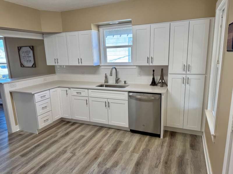 Beautifully Updated Two-Story Craftsman....This stunning Craftsman has been completely refreshed from top to bottom. Enjoy a brand-new, professionally designed kitchen featuring modern cabinetry with soft-close doors and drawers, quartz countertops, stainless steel appliances, and a convenient eating bar. The elegantly remodeled bathroom offers an expansive vanity and stylish finishes. Additional updates include new flooring, fresh interior paint, all-new vinyl windows, an updated roof, and upgraded electrical. Comfort is ensured year-round with a high-efficiency gas furnace and central air conditioning. The property also offers ample storage in the basement, a one-car garage with an attached shed/shop, and a long driveway for extra parking. Enjoy the outdoors with raised garden beds perfect for gardening enthusiasts and close proximity to city parks.