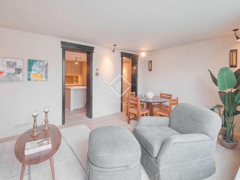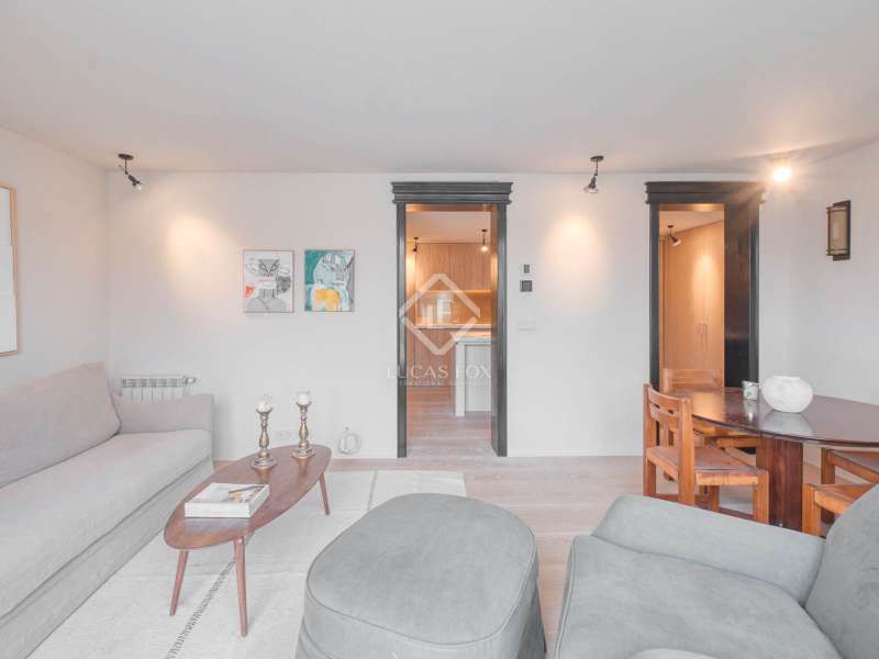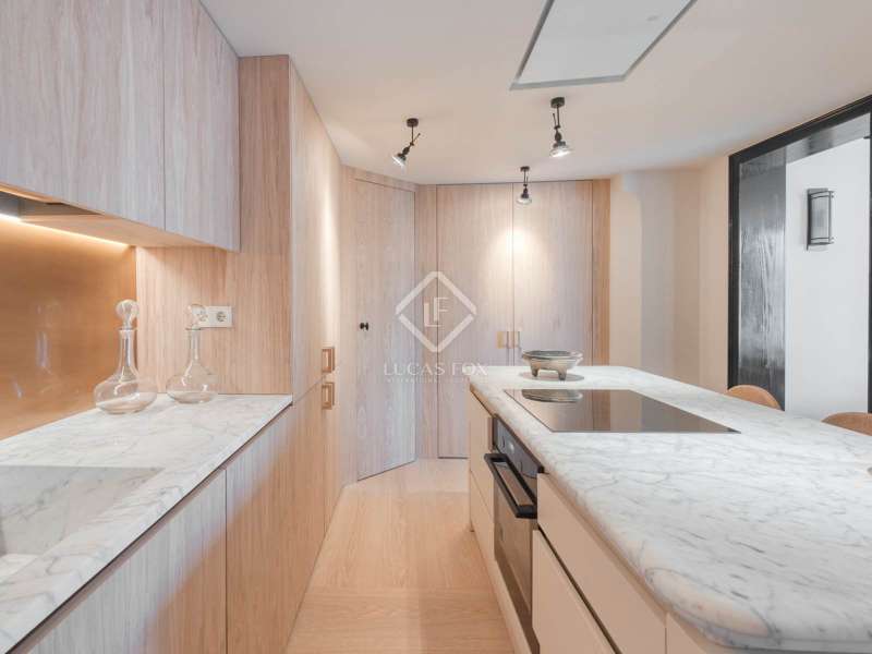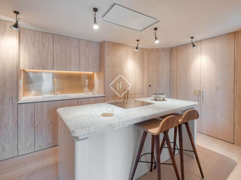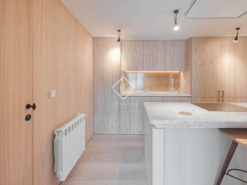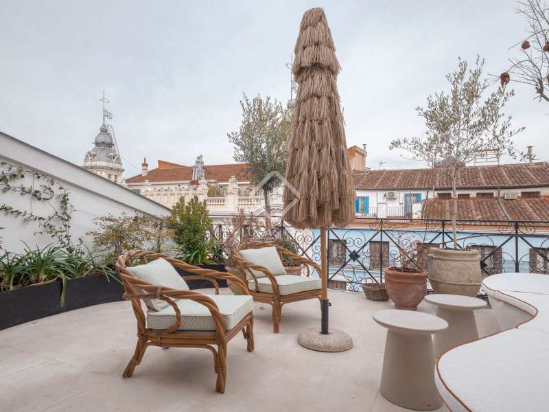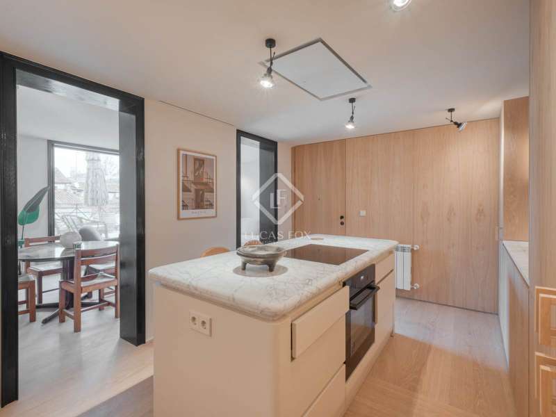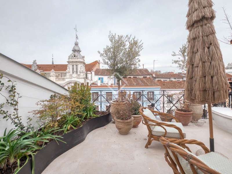 Lucas Fox presents this penthouse on the sixth floor of a classic 1900s building in Palacio, Madrid. It boasts a stunning terrace where you can enjoy the outdoors. The design is by renowned interior designer Tristán Domecq, with an elegant and welcoming style. It has two bedrooms, one with a private bathroom, and a second bathroom. The day area features a magnificent kitchen made of wood and natural marble, giving it a warm and sophisticated touch. The living room is filled with natural light and has spectacular views of the terrace. Contact us for more information.