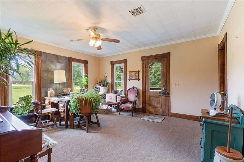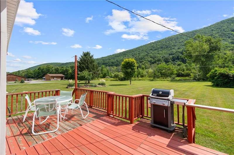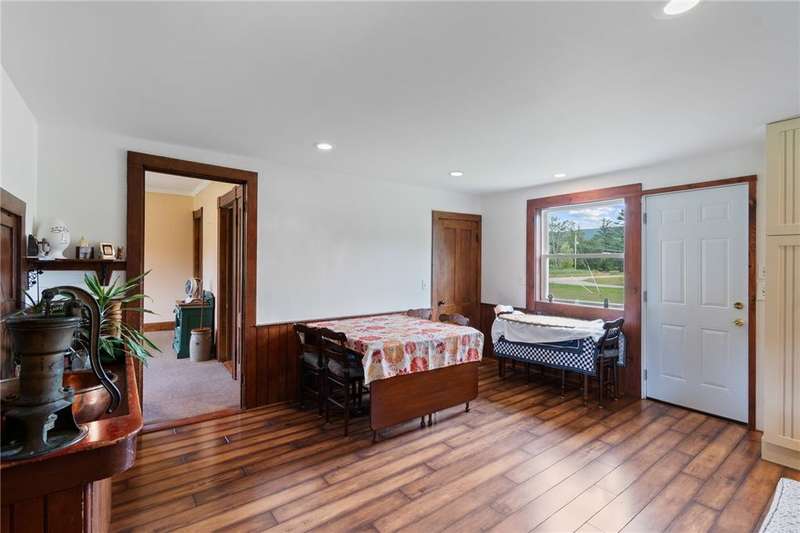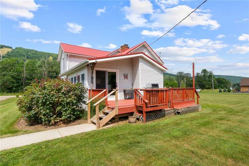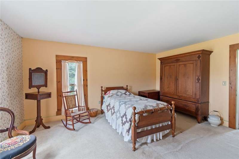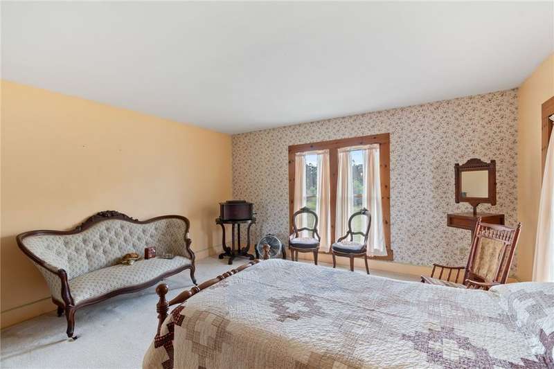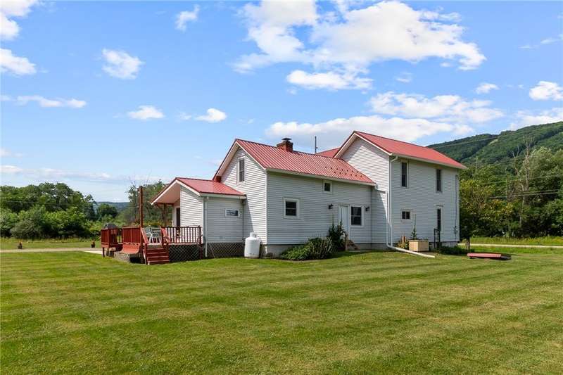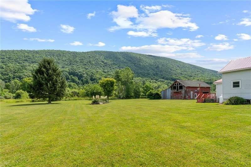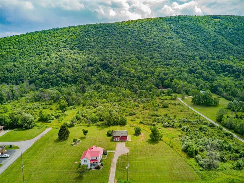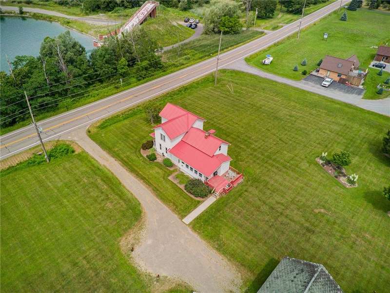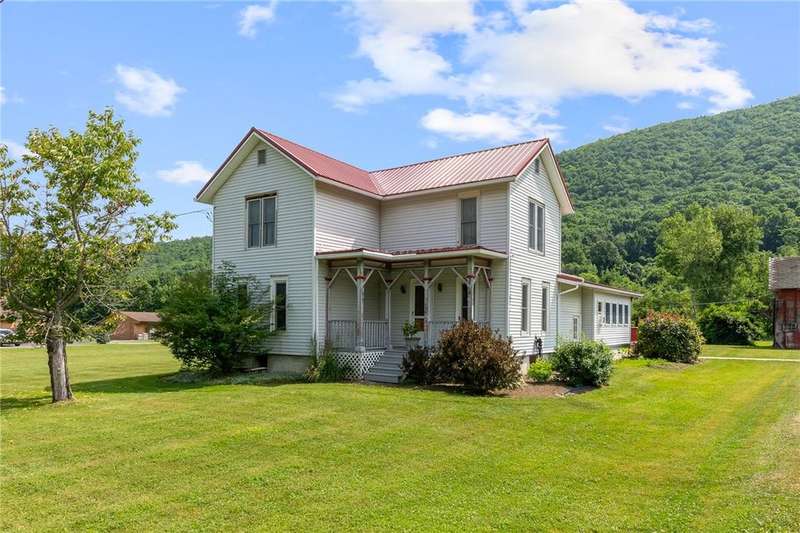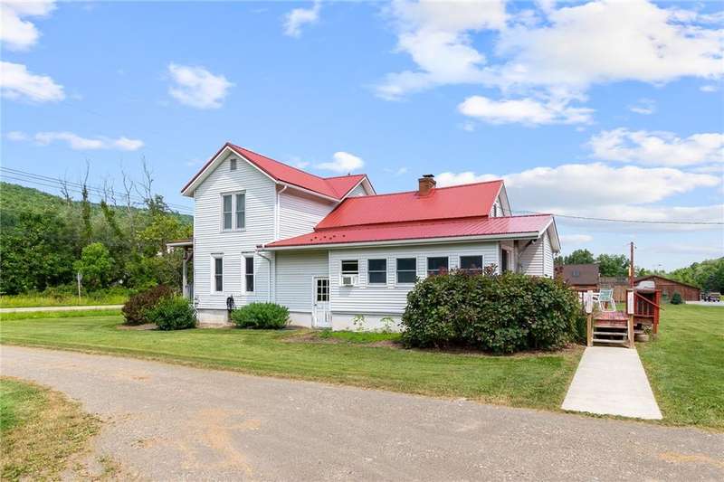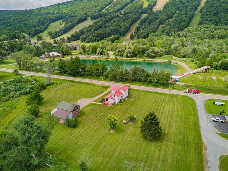 LOCATION LOCATION LOCATION!!! Very close to Bristol Mountain Ski Resort! This well maintained farmhouse will bring you back in time with its character, while offering many modern day updates. The heart of the home is the open concept kitchen/living room which has a beautiful brick fireplace converted to gas, perfect for curling up with a good book. The kitchen adorns Brookhaven cupboards, granite countertops, a gorgeous old fashioned red stove, and has a built in hand washing sink for convenience. Off the kitchen is a walk in pantry for canned goods perfect for storage. The Den is bright with tiled 8 foot ceilings and natural woodwork. A spacious Primary 1st floor bedroom which could be used as an inlaw if needed. A full bath on the first floor with a walk in shower and an old fashioned claw foot tub. The upstairs has 3 large bedrooms which are freshly painted including the sky parlor, which has a walk in closet. A quaint 1/2 bath upstairs for convenience. There are some furniture pieces that the buyer could make an offer on, separate from the sale of home.The home has Geothermal heat pump system which is the greenest most efficient, and cost effective system.The property has a 4 Bay Barn which has 1584 square feet on the first floor with electric in the front, along with a partial second floor of 820 square feet, totalling 2412 square feet. Possible uses for the property are an AIRBNB or a farmette with a couple of horses. There is plenty of room for recreation on this property! The 11.5 acres backs up to Stid Hill State Land. The home is Owner Occupied and the Sellers are requesting 24 Hours Notice for all appointments, no exceptions. Daytime appointments are preferred by the sellers from 9AM-4PM.This beautiful home is across from the Aerial Ski Jump at Bristol Lake. You may also enjoy watching the Hang Gliders behind the house who jump off from Stid Hill. The location is 20 minutes from downtown Canandaigua and 20 minutes from Naples. There are many local Restaurants, Shopping, and recreational opportunities close by.