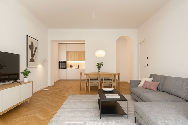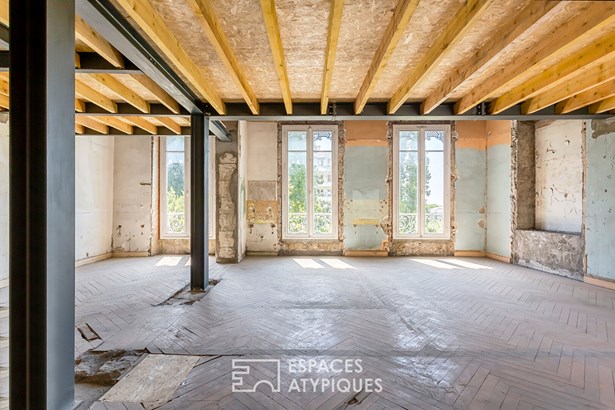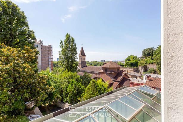 Located in Caluire, on the edge of Croix-Rousse, this house dating from 1880, with a living area of 213 sqm on a wooded plot of 1,300 sqm, is a true haven of peace. The architectural renovation project determined a redistribution of spaces, more functional and harmonious, leading to a complete restoration of the structural work and networks, with materials chosen to meet aesthetic requirements.