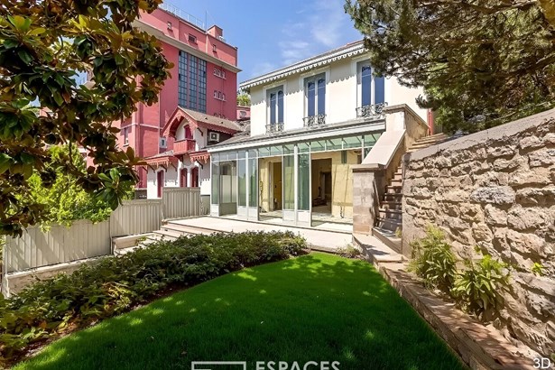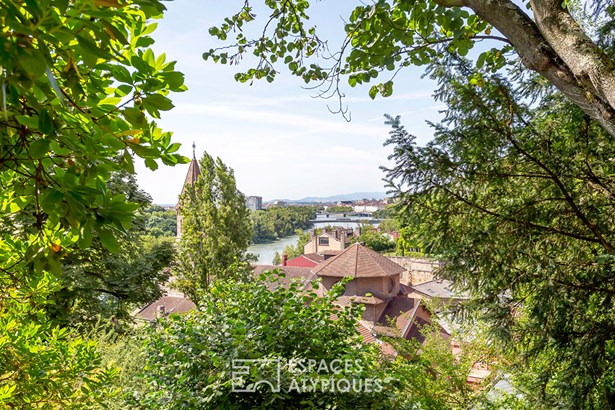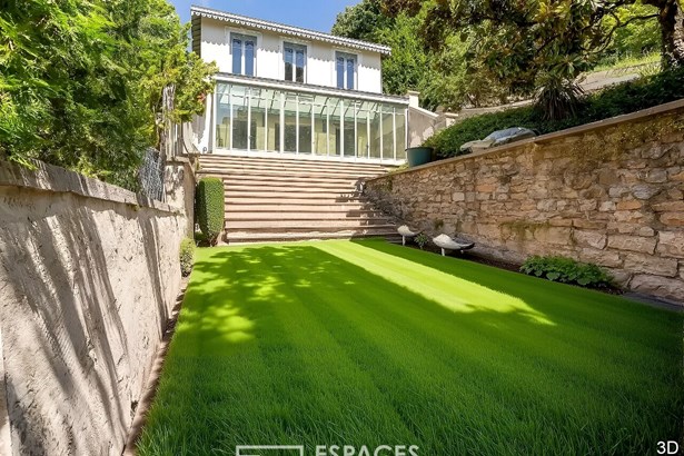 A possible extension of this dovecote, of approximately 40 m2, would allow it to be transformed into a large independent studio with views of the Rhone, Lyon, and the Monts du Lyonnais. The high ceilings, large existing openings, and open spaces allow for a renovation combining old-world charm and contemporary features. Outside, the 1,300 sqm garden, rare in an urban area, with views of the Rhone and Lyon, creates a bucolic green cocoon just a few minutes' walk from Croix Rousse, the 6th arrondissement, and the Parc de la Tete d'Or. Quiet and beautifully planted, it harmoniously extends the living spaces, ideal for the development of terraces and the garden, to be enhanced with a swimming pool.