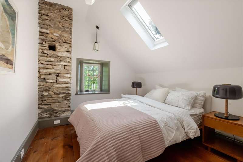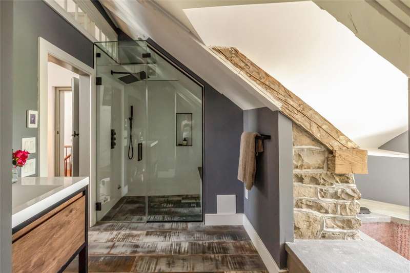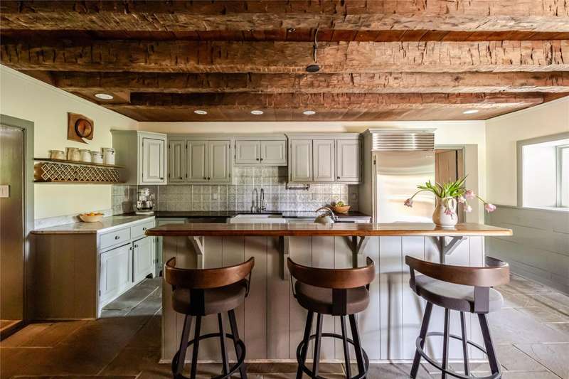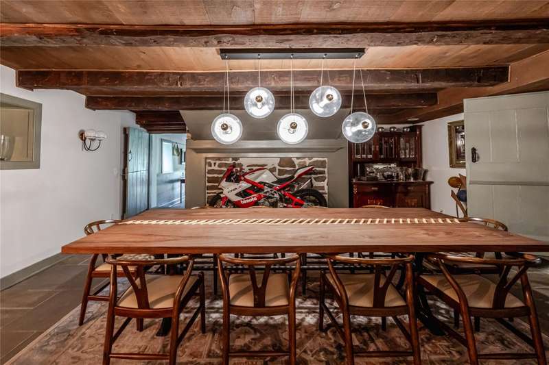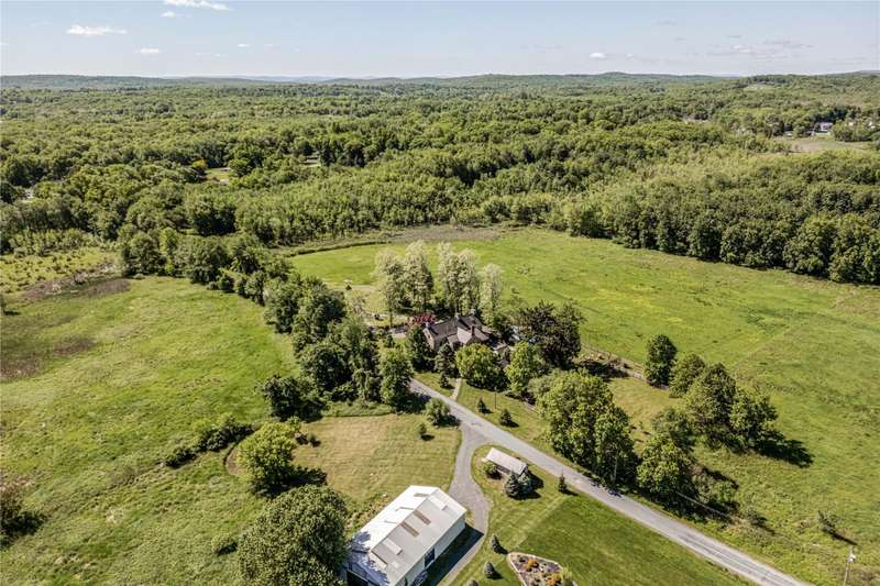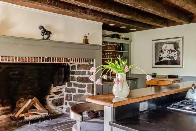 Welcome to the Daniel Bull House, a remarkable 1787 estate and one of the Hudson Valleys finest examples of early American stone architecture. Originally built by one of Hudson Valleys founding families, this historic stone residence has been masterfully restored, blending old world craftsmanship with modern luxury. Ideally located just minutes from town yet offering the serenity of a private retreat, Daniel Bull House stands as a testament to traditional American heritage, and the sophisticated vision of its current stewards.Sited on over 31 pastoral acres across two parcels, this three-story home offers four spacious bedrooms, three-and-a-half luxurious bathrooms, a screened-in porch, and a heated saltwater pool overlooking an idyllic landscape. Step inside to discover a warm and inviting library anchored by one of five grand fireplaces. Natural light floods the interior spaces throughout the daya rare feature for a stone house of this era. Period details are present throughoutfrom wide-plank hardwood floors and handcrafted built-ins to original millwork and a hearth in the chefs kitchen that evokes another era. While historic charm takes center stage, no expense was spared in updating the homes infrastructure. Energy-efficient throughout, the home features fully upgraded mechanicals, a state-of-the-art Buderus heating system, radiant flooring, and an outdoor furnace that can heat both the house and pool for added comfort and peace of mind.Outside, the grounds showcase bluestone patios, mature gardens, stone terraces, complemented by striking outdoor sculptures. Multiple outbuildings enhance the estates charm, including a modern, 45 x 75 garage offering potential as a studio, workshop, or guest quarters. Just 90 minutes from Manhattan, Daniel Bull House offers private solace while being a short drive to local amenities and endless upstate outdoor adventures. This lovely country retreat presents a rare opportunity to own a significant piece of American history, thoughtfully preserved and enhanced for modern living.