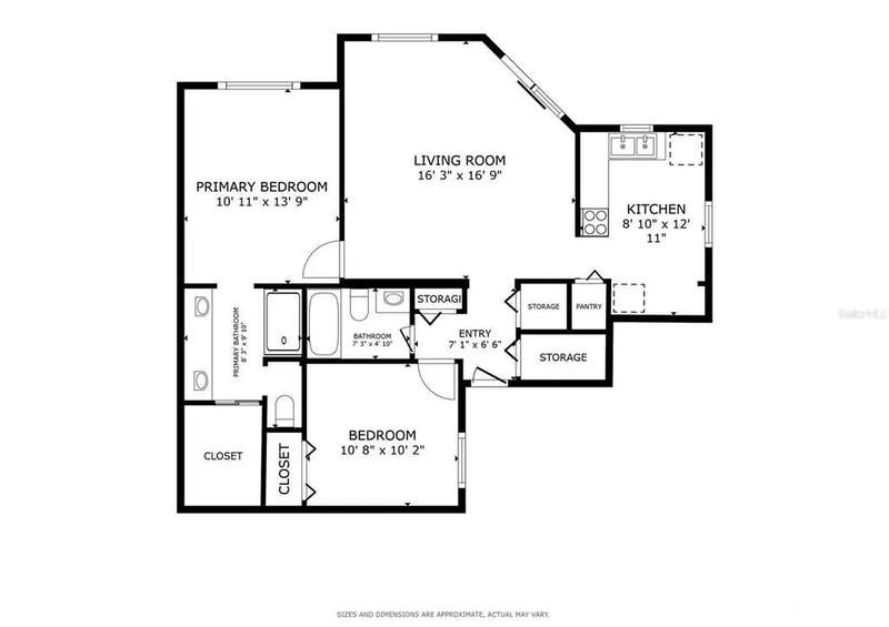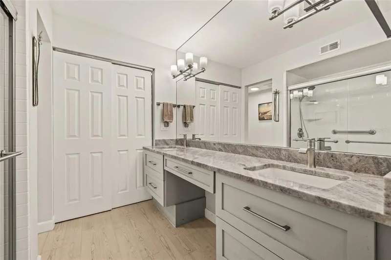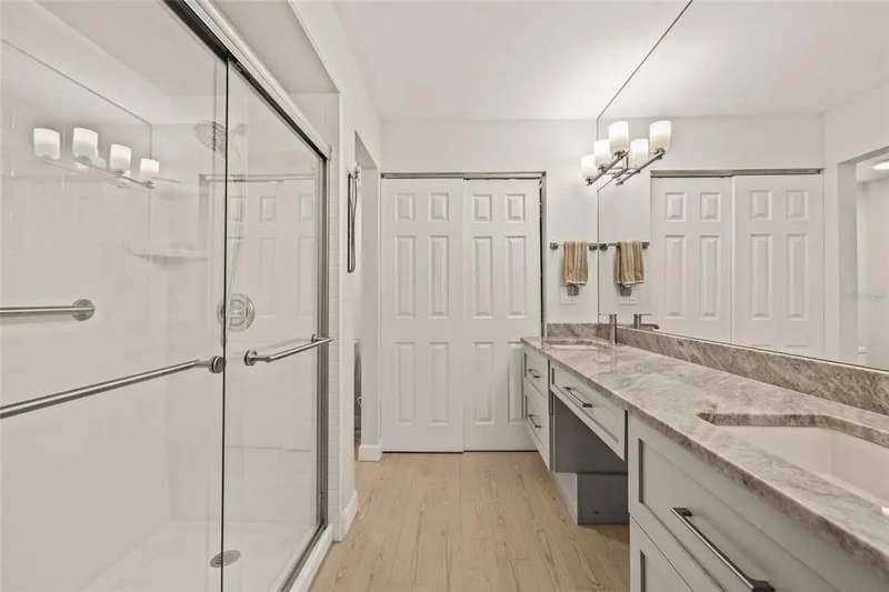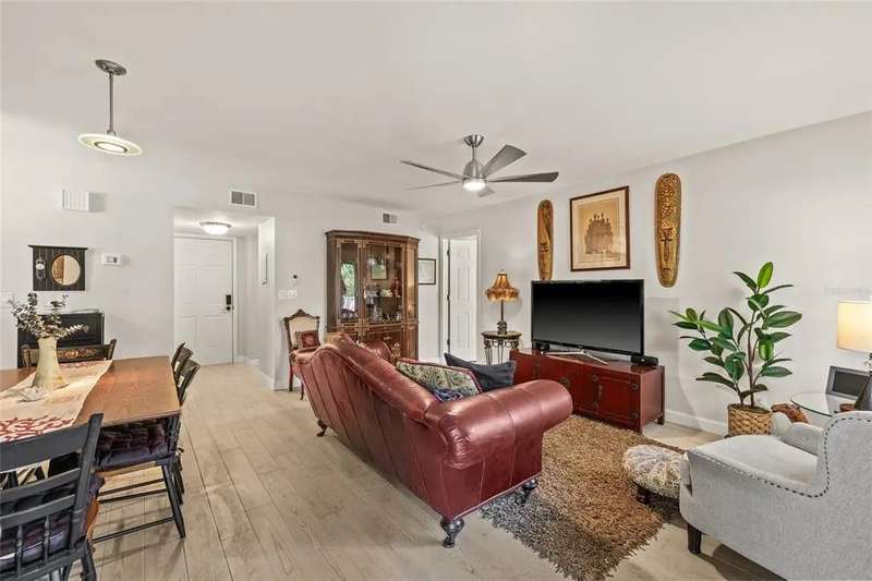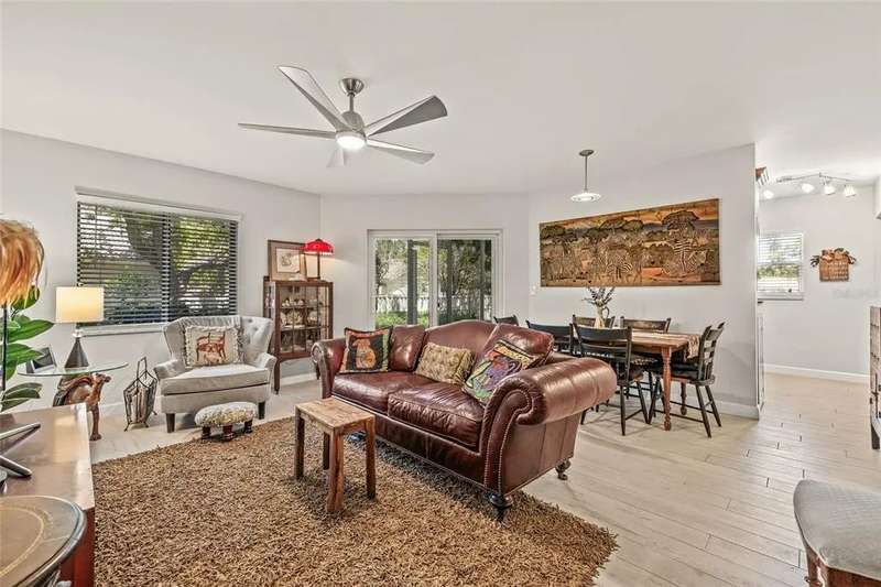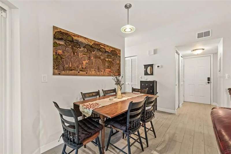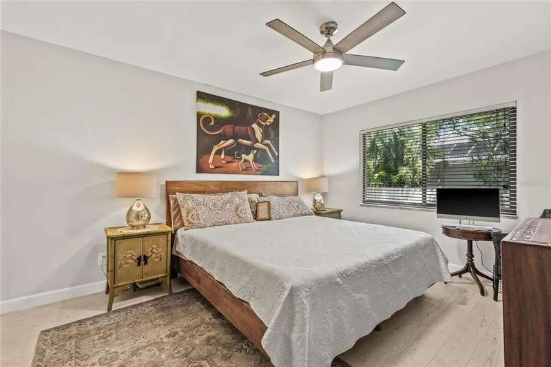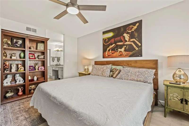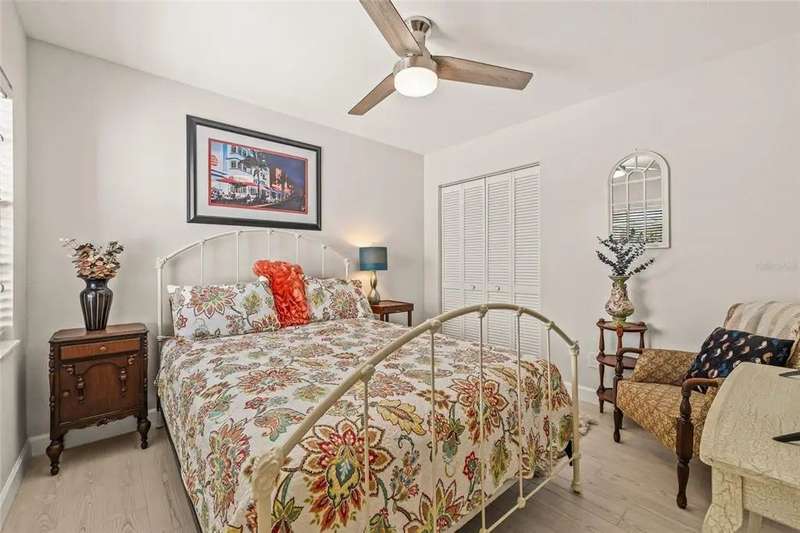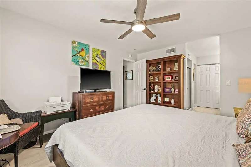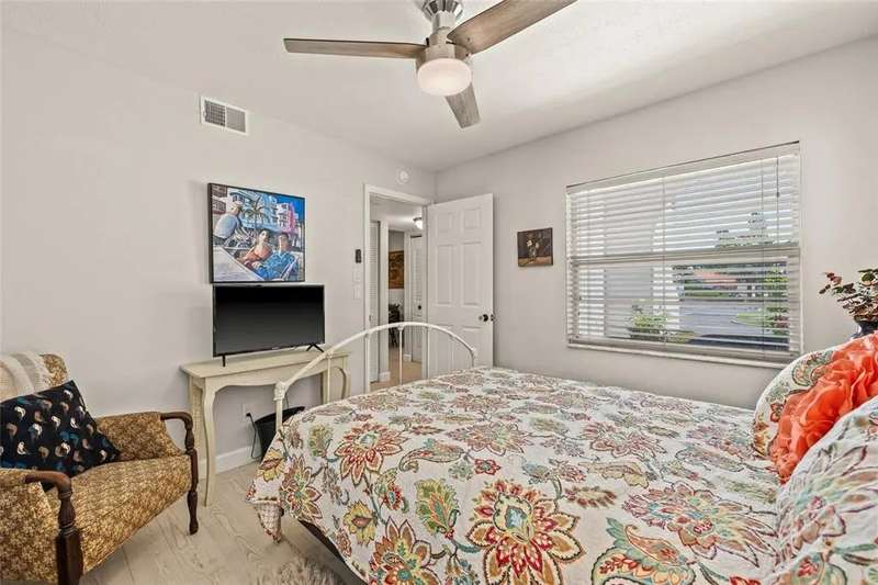 Click the video tour link to walk through virtually. Gorgeous single-level, ground floor condo within Placido Bayou, an exclusive gated community in St. Petersburg, FL. No flooding experienced at this residence from hurricanes. This unit has the benefit of limited upkeep and a maintenance-free lifestyle regardless if it will be your primary residence, second home or an investment property. This updated 2/2 home has a split floorplan & a private end unit with a screened patio providing an open and airy ambiance. Pride in ownership is evident with the major upgrades added to the home: New wood-plank ceramic tile throughout the entire residence, whole-house interior painting, new baseboards, removal of popcorn ceilings, new step-in shower in the primary bathroom, new toilets, walk-in closet shelving system, custom ceiling fans, modern and updated electrical receptacles, new refrigerator, dishwasher, new HVAC and hot water heater. Entering the residence’s private entrance with a personal entry large enough for outdoor patio furniture, you will feel like you are in a single-family home versus a condo. The kitchen features ample cabinets, a large pantry, plus extra storage by the front door. A laundry closet is also located in the kitchen housing a new stackable washer & dryer. The screened rear porch, just off the living room, provides a peaceful space to enjoy your morning coffee. Unique to this condo, a private sidewalk approach from the parking area leads to the screened patio (no stairs from this sidewalk). The oversized main bedroom can accommodate a king-sized bed in addition to large furniture and features an en-suite bathroom with new step-in shower and gorgeous double vanity sink. This guard-gated neighborhood has it all: No age restrictions, pet-friendly (up to two pets not to exceed 50 lbs. total), community pool & spa, the ability to bike downtown, fish in the community’s lakes or step outside to walk among natural foliage. If you are a tennis player, the Racquet Club of St. Petersburg is located directly outside of the neighborhood. If golf is more of your game, then Placido Bayou is minutes from the Vinoy Golf Club and the municipal course, Mangrove Bay. Placido Bayou is also minutes from downtown St. Pete’s dining, shopping and entertainment venues, I-275, sugar-sand beaches & two international airports.
