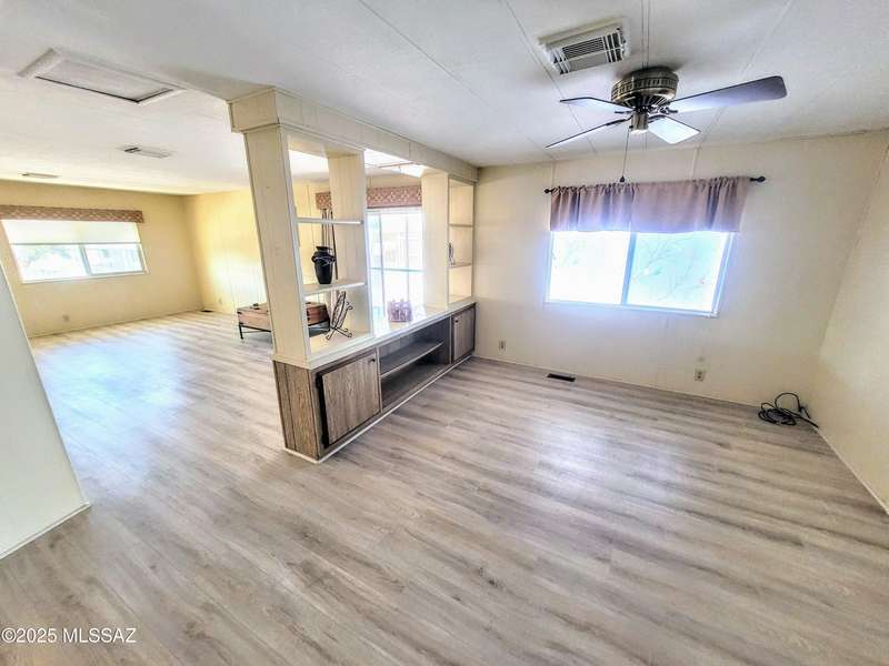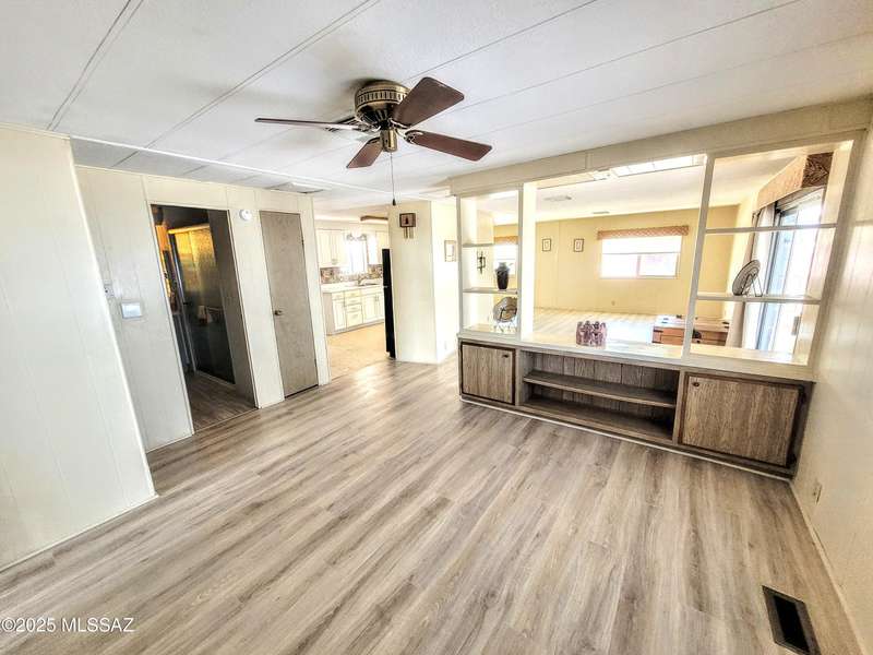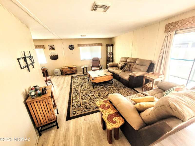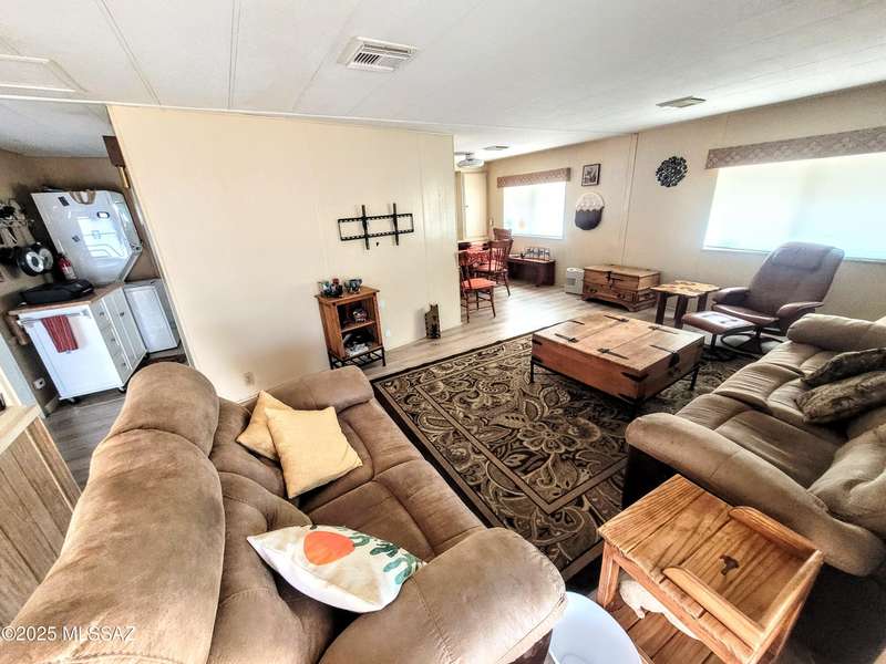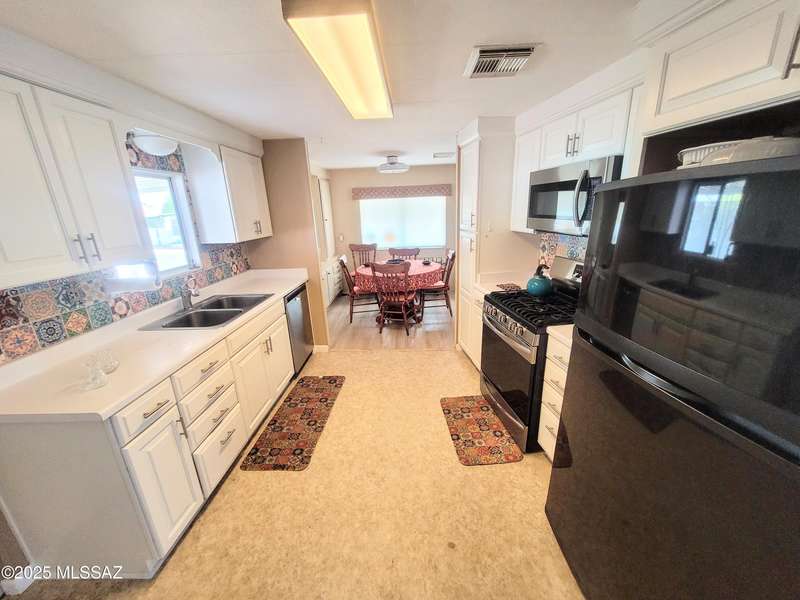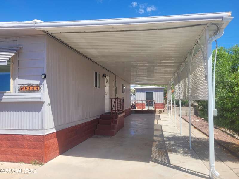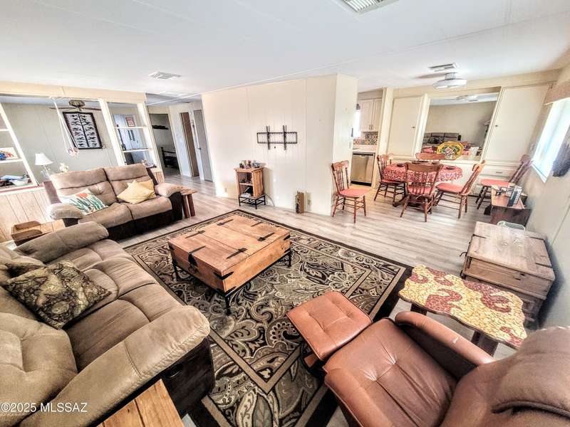 Resort-style living at an affordable price in this vibrant 55+ community! Space off Living can be office/craft space. The kitchen is updated a new gas stove and contemporary cupboards. The updated baths feature sleek, walk-in showers. Step outside the primary bedroom to a deck, perfect for enjoying a quiet morning coffee. Large screened-in Arizona room, complete with convenient storage underneath. The property also includes a dedicated block-walled golf cart garage and an additional shed with additional laundry hookups, providing extra space and utility. As a resident, you'll have unlimited access to incredible amenities, including unlimited golf, two sparkling pools, pickleball, a relaxing spa, Community Center and Hiking Trails. You own the LAND!