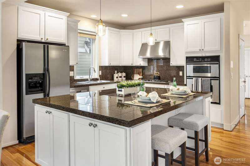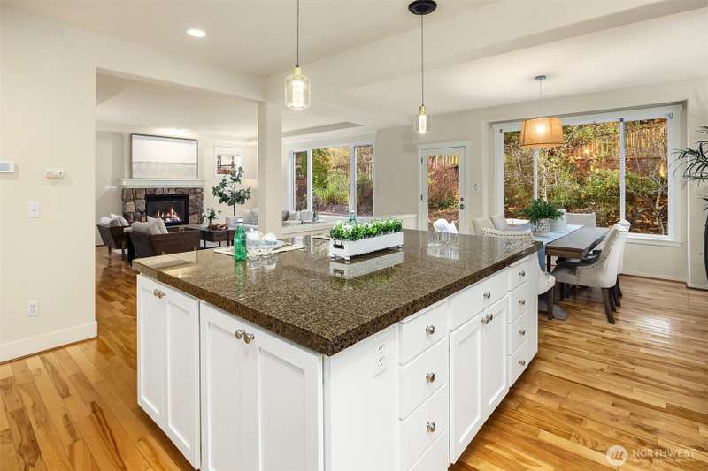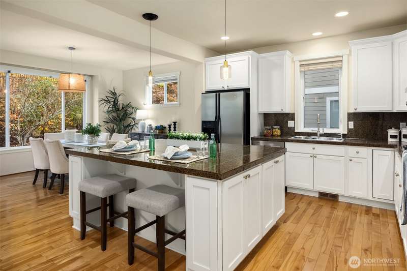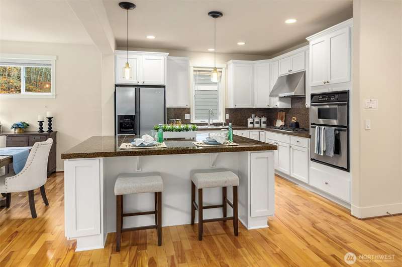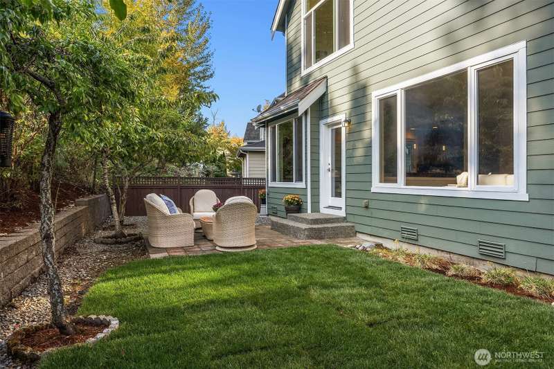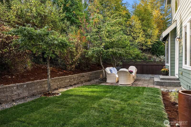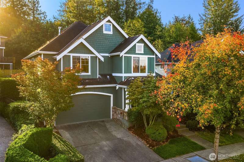 Brand new ROOF! Impeccable Burnstead resale offering rare privacy and a spacious backyard—yet just steps from the energy of Issaquah Highlands. Set in a peaceful community, it welcomes with a grand vaulted entry, French doors to the den, and rich hardwoods. The chef’s kitchen features granite counters/backsplash, an island, stainless appliances, and a gas range with hood. The great room centers on a cultured-stone gas fireplace. Double doors open to a serene primary suite with cathedral ceiling, walk-in closets, and a 5-piece tiled bath. Upstairs, enjoy mountain views. Outside: partial greenbelt outlook, organic veggie beds, and fruit trees. Minutes to Grand Ridge Plaza, parks, and trails—live serene, stay connected!