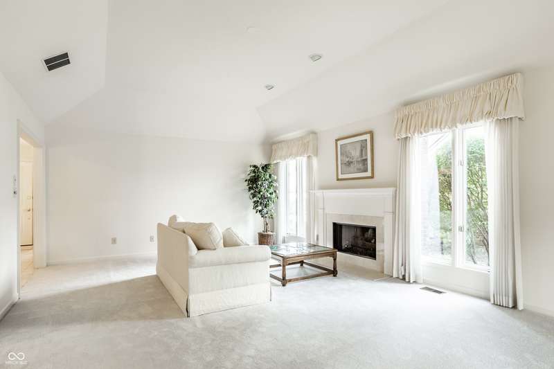 Welcome to this charming and versatile condo nestled in the highly desirable Springmill Lakes at Tamarack community. Designed for easy main-level living, this spacious home features a large living room with a cozy gas fireplace and an elegant formal dining room-perfect for entertaining. Enjoy peaceful views and abundant natural light in the beautiful sunroom, ideal for relaxing with a book or taking in the serene, private backyard. The generous primary suite includes a large walk-in closet, additional storage, and an ensuite bath. Also on the main floor are a second bedroom, full bath, and a refined office/library complete with custom built-ins and leaded glass window. Upstairs, a third bedroom and full bath provide a private retreat for guests or extended family. Additional highlights include a two-car garage, spacious laundry room, and ample closet space throughout. The community itself is a true gem, offering a tranquil setting with a private 17-acre nature preserve exclusive to residents. Don't miss the opportunity to make this well-maintained and beautifully situated condo your new home!