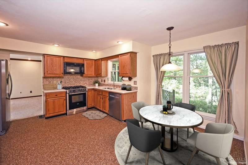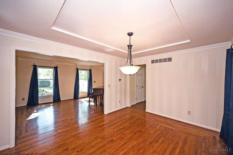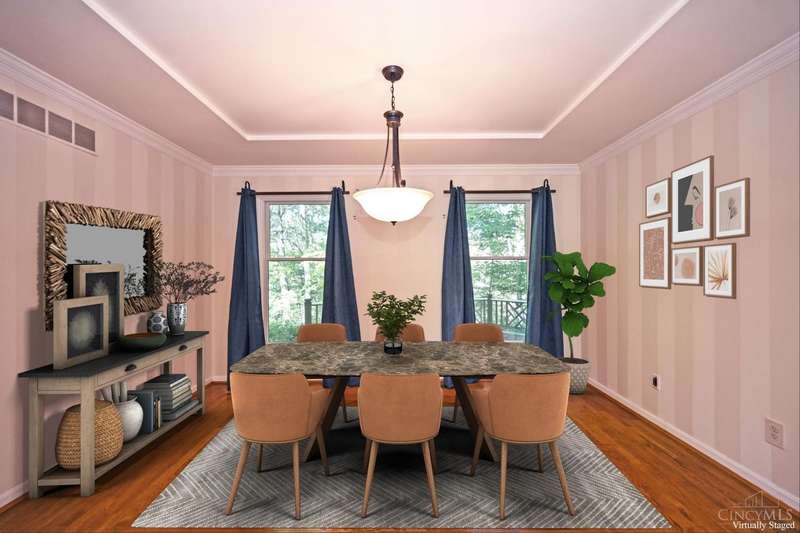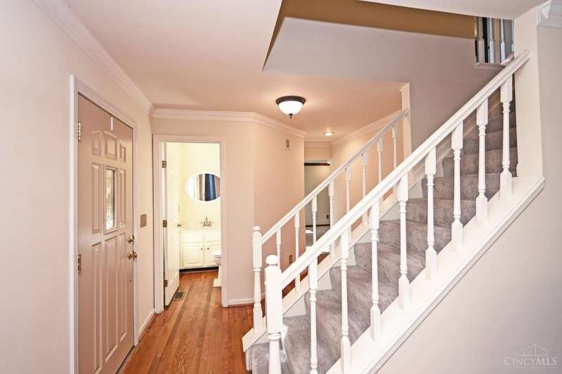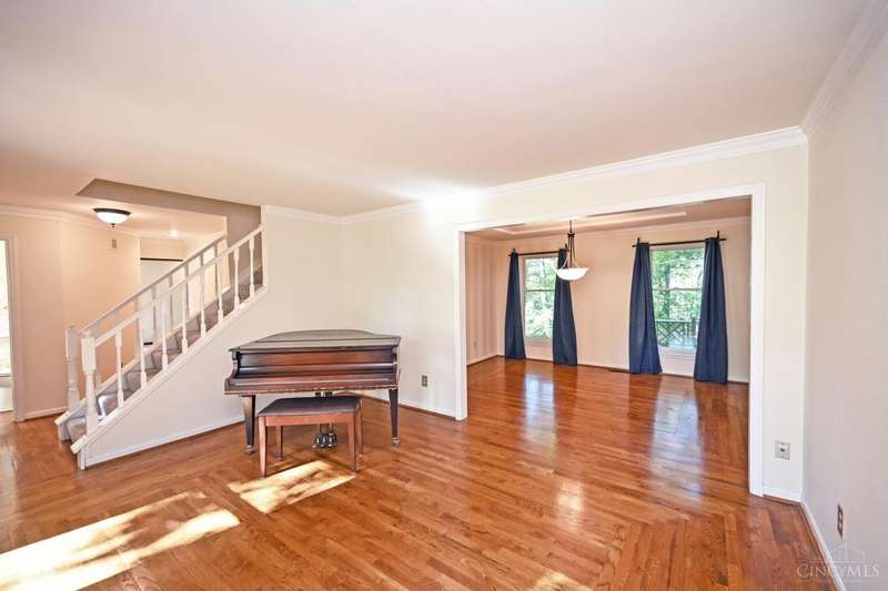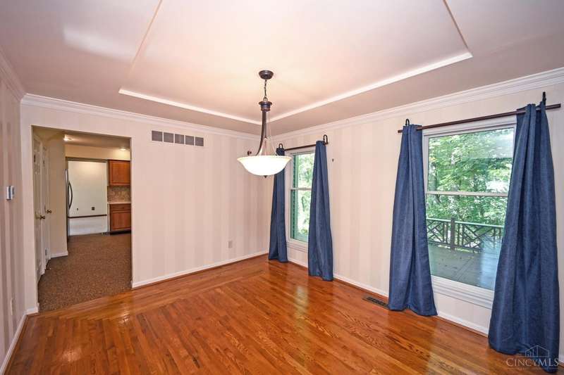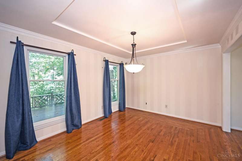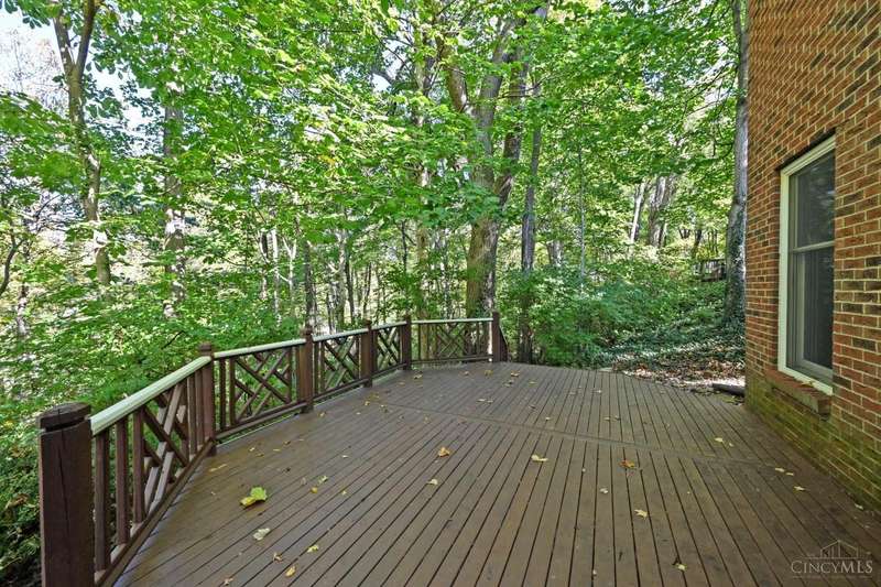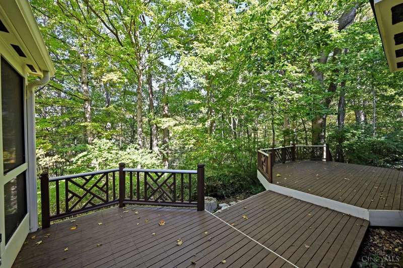 Tucked at the end of a peaceful cul-de-sac in Anderson Twp., this meticulously maintained 4 BD/ 2.5 BA colonial offers the perfect blend of neighborhood living & natural serenity. Backing to protected green space, it offers rare privacy and a park-like setting. Inside, you'll find hardwood floors, brand new carpet ('25) and a wood-burning fireplace with new stainless-steel chimney liner ('24). The cheerful eat-in kitchen features quartz counters, stainless steel appliances, dual-fuel stove, new dishwasher ('24) and opens to a formal dining room highlighted by a sophisticated tray ceiling with crown molding. Folding French doors open from the living room to a newly built, tiered deck & screened-in porch surrounded by mature trees and perennials. Perfect for entertaining or relaxing, this space offers so many possibilities! The spacious primary suite boasts a walk-in closet & updated en-suite bath. The finished basement with insulated floor adds versatile space with room to expand.