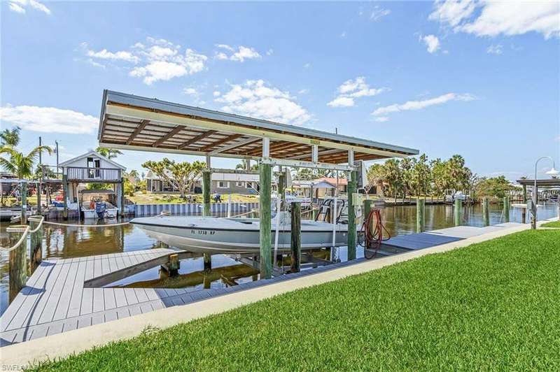 Island Life at its Best! This beautiful home sits on 75ft of waterfront with a newer sea wall on the Northern tip of Bokeelia. This home has 2Bedrooms/2 Bath upstairs, with open floor plan, Florida room and outside porch. Separate downstairs 1 Bedroom/1 Bath, with small kitchen. Covered 7500# Boat lift. With room for additional Boat Docks. Large yard with room for a pool. All windows have Hurricane Shutters. Canal has deep water access minutes to Charlotte Harbor, Boca Grande, Cayo Costa, Cabbage Key, and some of the Best Tarpon Fishing you can find. Home was remodeled after Hurricane Charlie in 2005. This home has an additional 650 ft of living spaces from downstairs area.