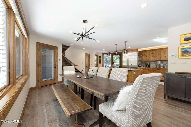 Perched in the coveted Potato Patch neighborhood, this beautifully appointed 5-bedroom, 4-bathroom duplex offers the perfect blend of luxury, privacy, and mountain views. With a spacious open floor plan designed for entertaining and everyday comfort, this home checks all the boxes for mountain living-without compromising on modern touches. Step inside to discover European wood flooring, radiant in-floor heating, and air conditioning throughout, ensuring year-round comfort no matter the season. The light-filled living area flows seamlessly into a gourmet kitchen. Downstairs, a cozy family room/game room with a full bar offering plenty of space for relaxing and entertaining. The home comes fully furnished, so you can settle in immediately and start enjoying the peace and privacy of this tucked-away location. A generous 2-car garage provides ample room for gear, bikes, and vehicles, and the home's thoughtful design makes it an ideal basecamp for both winter adventures and summer mountain escapes. Whether you're soaking in the views with your morning coffee or cozying up by the fire in the evening, this property delivers that quintessential Vail Valley lifestyle, with a touch of alpine elegance that is only 2.5 miles away from world class skiing on Vail Mountain.