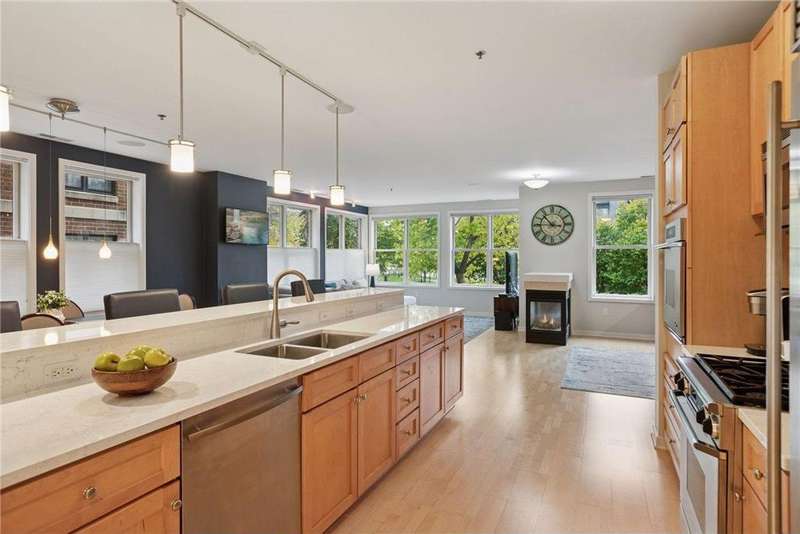 Experience sophisticated city living in this stunning 3BR/3BA luxury brownstone-the largest end unit w/over 2800 sq ft. and 10 ft. floor to ceiling windows throughout, located in the heart of downtown St. Paul. Offering breathtaking park & skyline views, this home is so convenient steps away from the Farmers Market, Mears Park, the Landmark Center, CHS field, Grand Casino Event Center, and the city’s finest restaurants & shops. The modern bright open floor plan features an abundance of large picture windows, elegant finishes, and loaded with upgrades including a remodeled, gourmet kitchen w/Cambria countertops, a custom tile backsplash, breakfast bar seating, and a walk-in pantry with built-in shelving. The dining and living areas flow seamlessly together, anchored by a striking three-sided gas fireplace-perfect for entertaining or cozy evenings. Upstairs, you’ll find three spacious bedrooms w/ custom closets, incl. a showstopping primary suite w/a luxurious walk-in dressing room and spa-inspired bath featuring dual vanities, custom counters, and a tiled walk-in shower. A versatile loft w/built-in bookshelf offers a perfect reading nook or home office. Additional highlights incl. 2 adjoining heated underground garage spaces w/interior access & an unbeatable location surrounded by parks, dining, & entertainment. Live beautifully and effortlessly in the center of it all-welcome home to downtown St. Paul living at its finest.