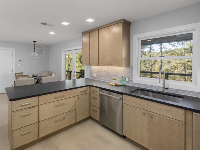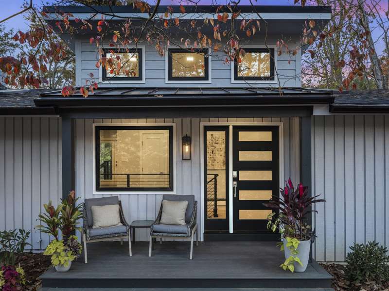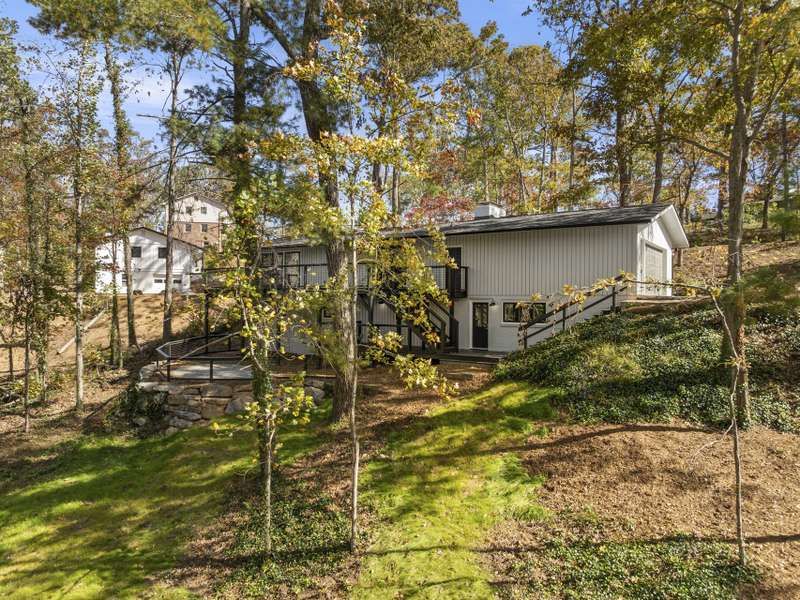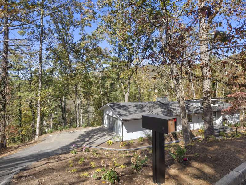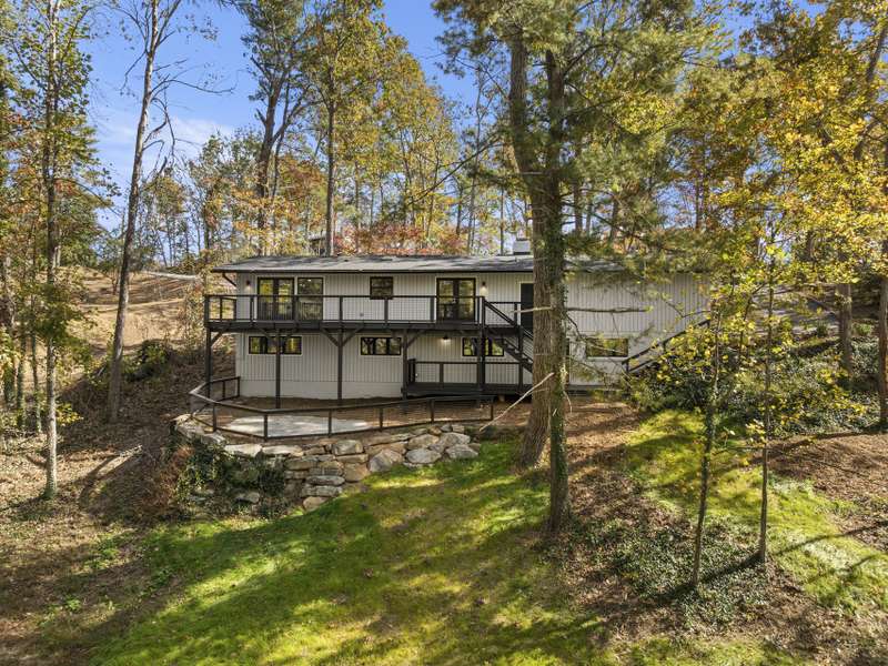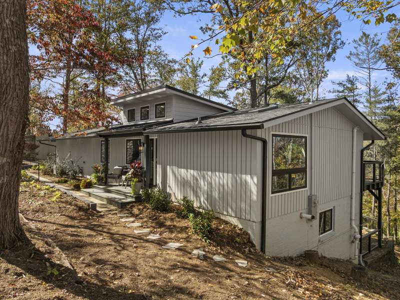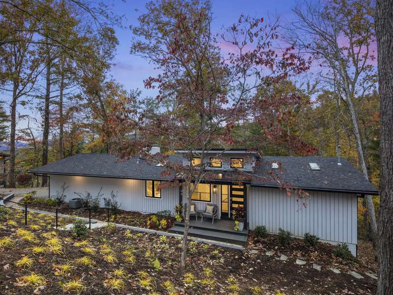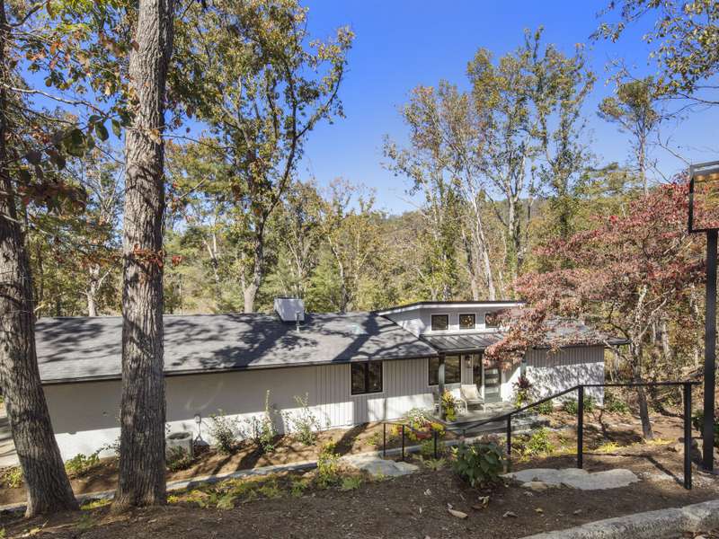 Modern luxury awaits in this meticulously renovated home nestled in peaceful Kimberly Woods. Originally built in the 1960s, this North Asheville gem has been completely reimagined to offer the sophistication and comfort of today's finest homes?at a value you won't find anywhere else in the area. Behind a sleek five-panel mid-century door, a sun-washed foyer with soaring ceilings and skylights hint at the contemporary style awaiting further inside. To your right, a formal sitting and dining room offers an elegant setting for gatherings. The sleek kitchen is a showstopper, featuring brand-new cabinetry, Corian countertops, stainless steel appliances, and a charming breakfast nook that's perfect for morning coffee or casual meals. Rounding out the main level, a comfortable living room centers around an original brick, wood-burning fireplace, creating the perfect place to unwind with a good book. Retreat to the terrace level and discover a true sense of privacy and calm. Here, the primary suite impresses with a sophisticated ensuite, joined by two inviting guest rooms and a versatile den ideal for movie nights or creative pursuits. Enjoy the outdoors with a versatile outdoor living space, featuring dual-level decks with mountain views, a stone patio perfect for a fire pit, and a gently contoured yard enveloped by mature trees. Just minutes from downtown Asheville, this home skillfully balances quiet neighborhood charm with easy access to renowned restaurants and shopping.
