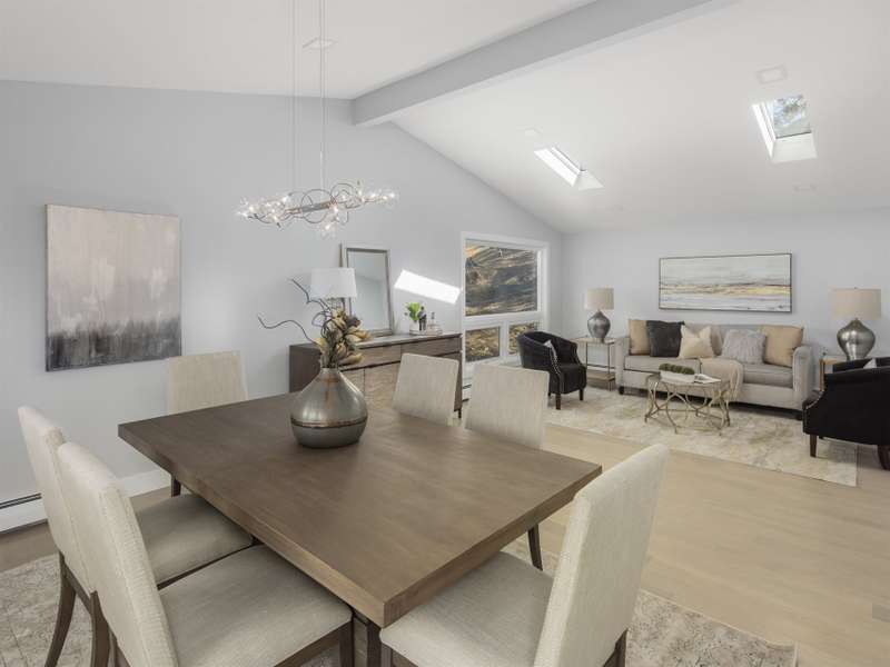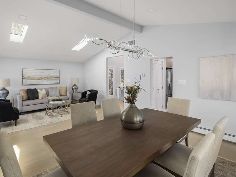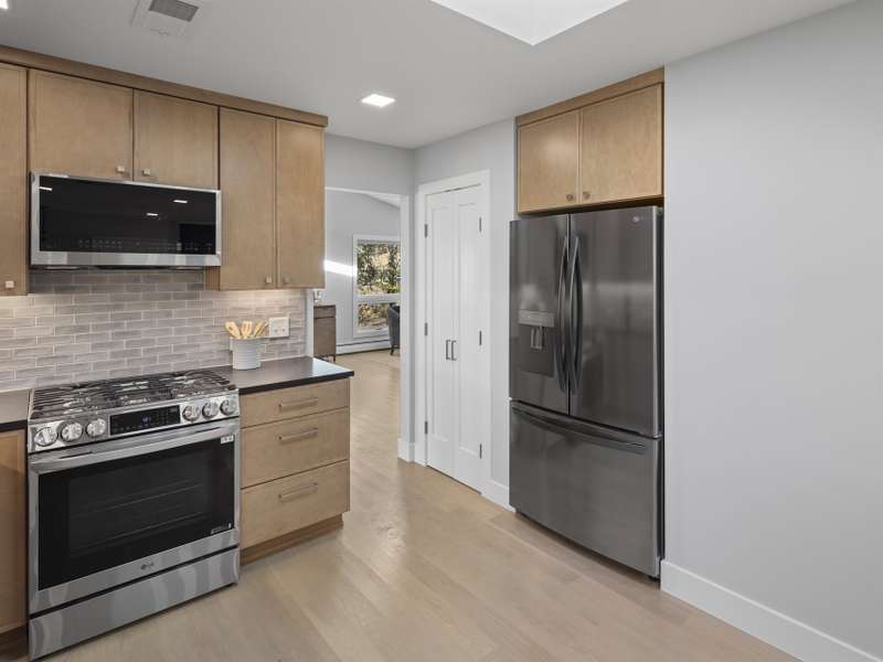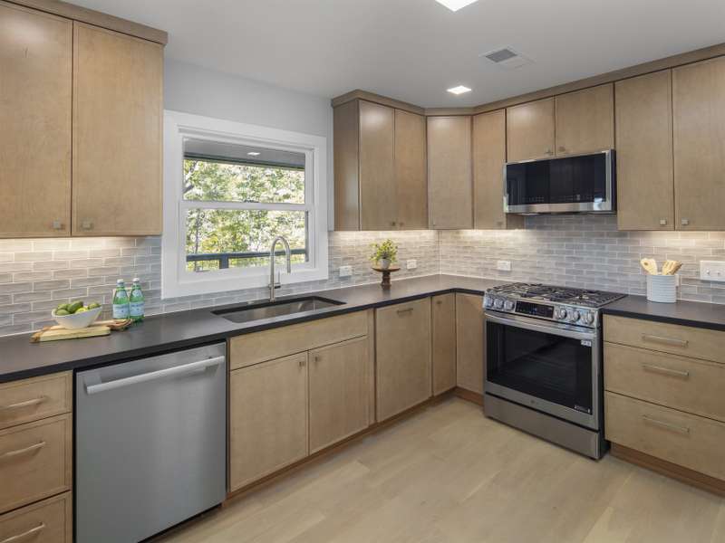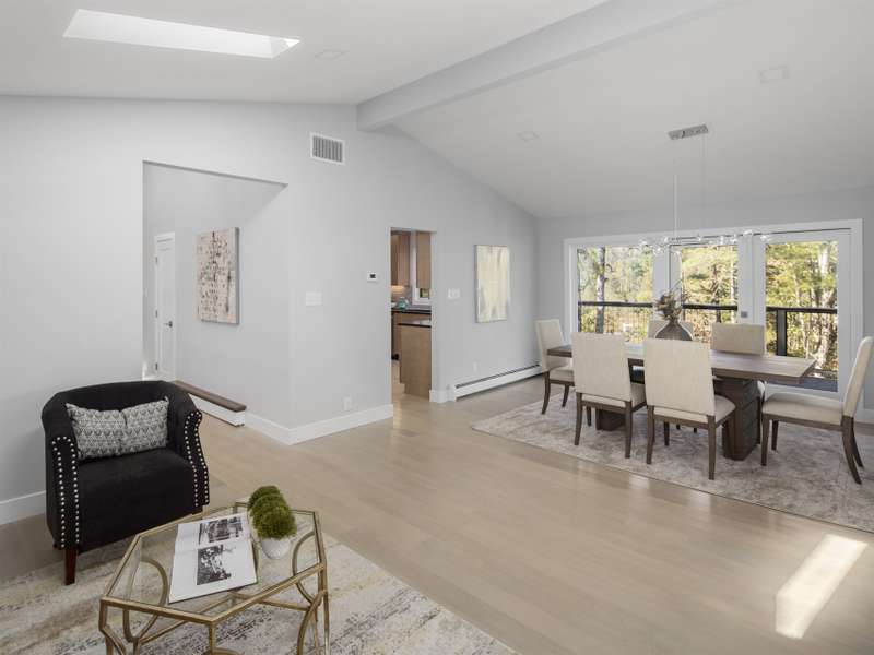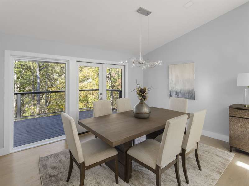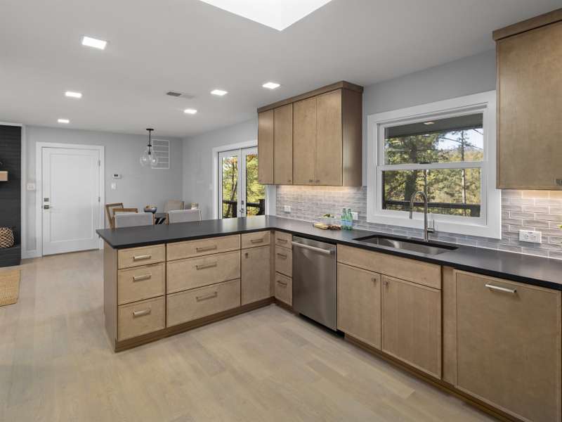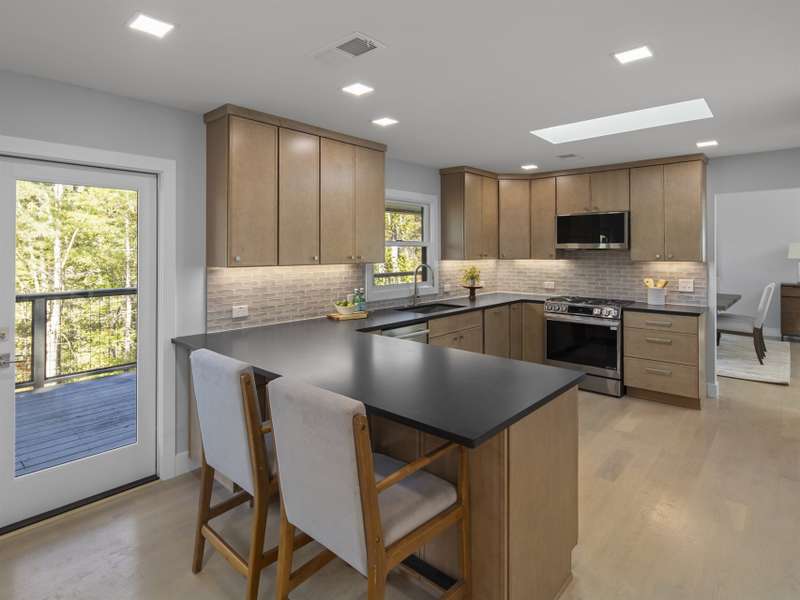 Modern luxury awaits in this meticulously renovated home nestled in peaceful Kimberly Woods. Originally built in the 1960s, this North Asheville gem has been completely reimagined to offer the sophistication and comfort of today's finest homes?at a value you won't find anywhere else in the area. Behind a sleek five-panel mid-century door, a sun-washed foyer with soaring ceilings and skylights hint at the contemporary style awaiting further inside. To your right, a formal sitting and dining room offers an elegant setting for gatherings. The sleek kitchen is a showstopper, featuring brand-new cabinetry, Corian countertops, stainless steel appliances, and a charming breakfast nook that's perfect for morning coffee or casual meals. Rounding out the main level, a comfortable living room centers around an original brick, wood-burning fireplace, creating the perfect place to unwind with a good book. Retreat to the terrace level and discover a true sense of privacy and calm. Here, the primary suite impresses with a sophisticated ensuite, joined by two inviting guest rooms and a versatile den ideal for movie nights or creative pursuits. Enjoy the outdoors with a versatile outdoor living space, featuring dual-level decks with mountain views, a stone patio perfect for a fire pit, and a gently contoured yard enveloped by mature trees. Just minutes from downtown Asheville, this home skillfully balances quiet neighborhood charm with easy access to renowned restaurants and shopping.