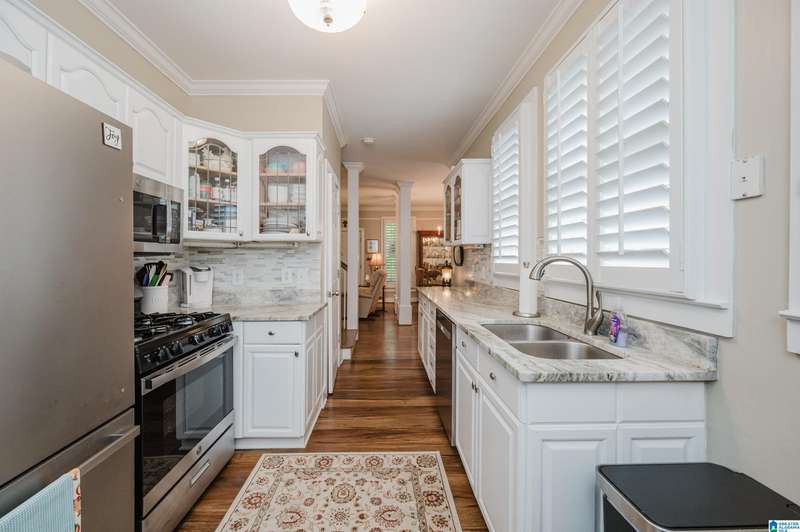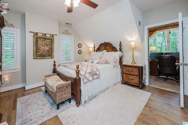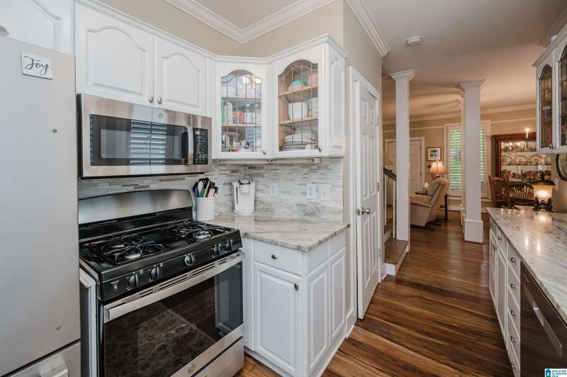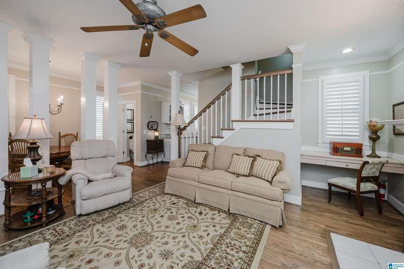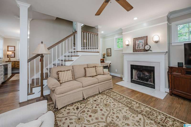 Welcome to this beautiful 3BR/3.5BA home in the historic and gated community of Blount Springs in Hayden, Alabama. Enjoy peaceful views from the inviting front porch and a warm fireplace in the living room. The kitchen boasts stainless appliances, gas stove, granite countertops, tiled backsplash, and a large pantry just off the laundry room. The master bath features a charming clawfoot tub, and hardwood floors flow throughout the home. Upstairs, a bonus room/office showcases rich wood walls and ceiling, perfect for work or relaxation. Plantation shutters remain, and the lower level offers ample closet space, storage with bedroom and full bath. Neighborhood amenities include a community pool, children's play areas, lake for fishing, and scenic walking trails. Tranquility, charm, and community await!