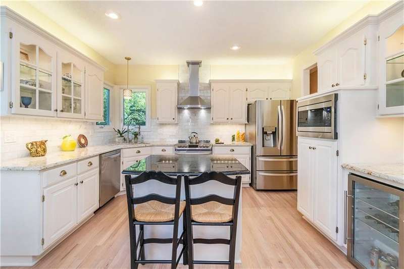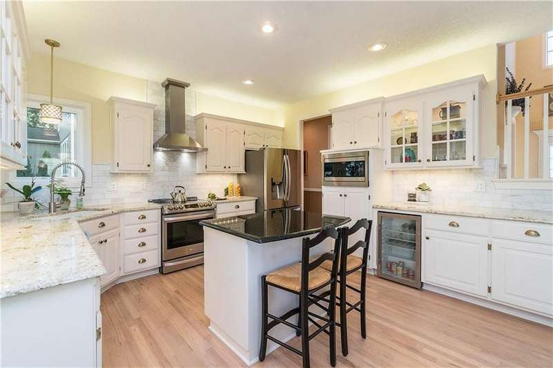 Stunning two-story home in Copper Creek subdivision! Meticulously maintained and move-in ready, this stunning residence has been updated throughout with no expense spared. Step inside to a soaring 13-foot ceiling in the great room, complete with a cozy fireplace, floor-to-ceiling windows, and an abundance of natural light creating a warm and inviting atmosphere. Gorgeous new hardwood floors shine on the main level, adding to the home's appeal. Fully updated kitchen is a chefs dream, featuring pullout shelving, high-end granite countertops, an electric stove with a stylish hood, newer appliances, a spacious island for extra seating and storage, and beverage fridge. An eat-in area offers a perfect spot for family meals. The laundry room and half bath are just off the kitchen for added convenience. Step outside to a high-end deck overlooking a beautifully landscaped backyardideal for outdoor entertaining and relaxing. The dining room is conveniently located off the kitchen, perfect for hosting friends and family. Upstairs, the spacious primary suite boasts an incredible updated bathroom with marble flooring, a luxurious soaker tub, a beautifully tiled shower with multiple spray heads, and a generous walk-in closet. Three additional bedrooms share a fully updated bath with a double vanity and shower. The daylight lower level offers plenty of space and includes a third full bathroom, providing comfort and versatility. Special features include fresh exterior paint, a polyaspartic garage floor, thermal pane windows with a 50-year transferable warranty, custom blinds throughout, updated lighting, and so much more. Located within walking distance to Liberty View Elementary, and just blocks from Blackbob Bay Water Park, walking trails, the farmers market, and shopping. Schooling in the award-winning Blue Valley School District makes this home truly stand out. This fabulous home is in immaculate condition and truly has it alldon't miss the opportunity to make it yours!