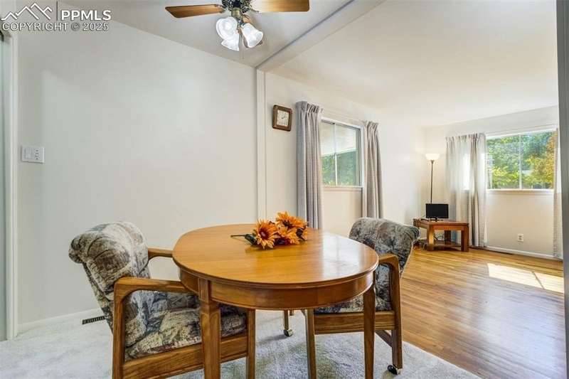 Located in the heart of Indian Heights on the west side, this home sits within walking distance of Garden of the Gods, offering unmatched access to Colorado Springs’ most iconic trails, red rock formations, & scenic open spaces. The setting combines a quiet neighborhood feel w/ close proximity to local coffee shops, dining along West Colorado Ave, & quick access to Mesa Road, Old Colorado City, & downtown. Inside, solid oak hardwood floors span the main level, including all three bedrooms, lending timeless character & warmth. The bright living room opens to the dining area for an easy, connected flow, framed by natural light from the large picture window. The kitchen blends darker wood cabinetry, laminate countertops, & gas cooking, w/ a direct walk-out to the covered back deck, perfect for morning coffee or summer evenings outdoors. The main level bath has an updated vanity, adding a modern touch to the home’s mid-century bones. The finished lower level extends the living space w/ a spacious family room, fourth bedroom, full bath, & laundry area. Out back, the covered wood deck overlooks a fully fenced, level yard w/ mature trees, plus a storage shed for added utility. The carport, vinyl siding, & updated windows round out the practical upgrades, while the location delivers unbeatable outdoor access just steps from Garden of the Gods & nearby hiking, biking, & neighborhood parks. A rare westside find offering everyday comfort, classic hardwood charm, & a true Colorado lifestyle, where Garden of the Gods is literally in your backyard.