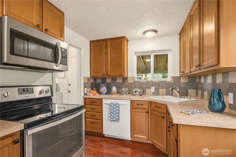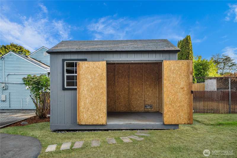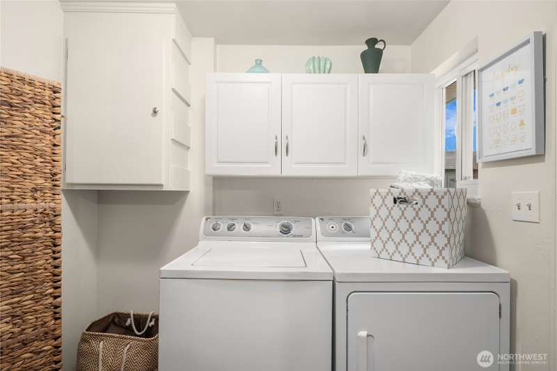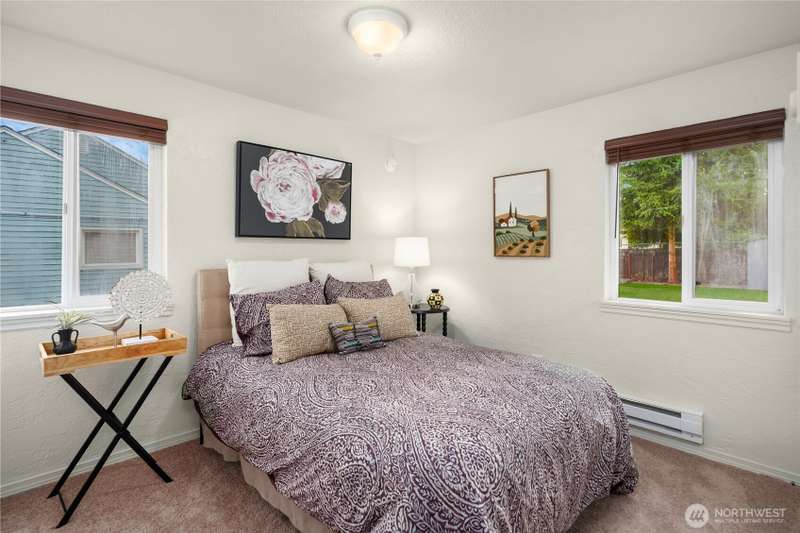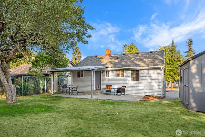 Immaculate and charming home on quiet street. All new paint and carpet throughout. Lovely kitchen with nice appliances. Roomy bedrooms and an updated bath. Energy efficient with individual heating and double-pane windows. New water heater and laundry room with included washer and dryer. Wonderful covered rear patio and huge fully fenced yard for friends to gather and enjoy. Plenty of garden space as well, and has two sheds for tons of storage. Driveway provides oodles of off-street parking or storage for an RV or boat. A great house and property!