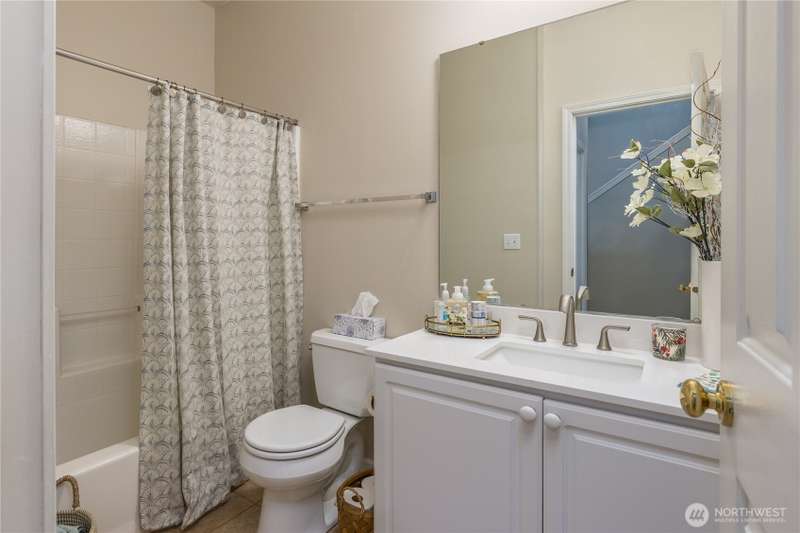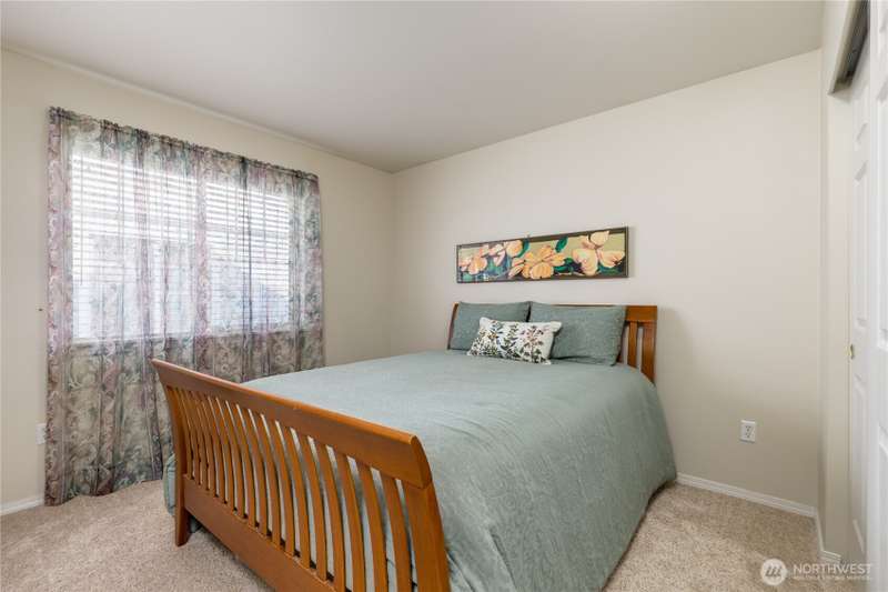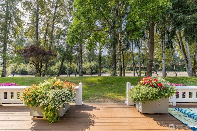 Welcome to this Riverwalk Condominium, tucked away on a quiet cul-de-sac and backing up to the scenic Puyallup River! Enjoy peaceful views from nearly every window and direct access to the walking trail just steps from your expansive deck (with retractable awnings!), one of the largest in the community. The inviting layout features a bright kitchen with white cabinetry & hardwood flooring, plus formal living & dining areas with a cozy gas fireplace. Main floor bedroom or office has adjacent full bath, perfect for guests. Upstairs, the spacious primary suite boasts river views, walk-in closet & double sinks. Central A/C, wired for generator, and HOA-maintained roof, siding & landscaping. Close to parks, trails, and charming downtown Sumner!