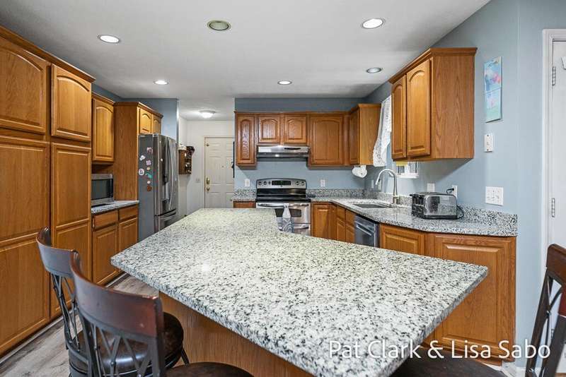 Perfectly located in the center of the sought-after Spring Lake Schools district, this spacious two-story home is on a quiet cul-de-sac and surrounded by bike paths and walking trails. Step inside to a bright and open main floor layout featuring a beautifully updated kitchen, convenient main-floor laundry, and plenty of room for entertaining. Upstairs, you will find a spacious primary suite, two additional bedrooms, and a second full bath. The finished lower level includes a large family room, fourth bedroom with an egress window and has a partially finished full bath. Outside, enjoy the fully fenced backyard - ideal for backyard sports, relaxing, or hosting friends and family. Don't miss this incredible opportunity to live in one of Spring Lake's most desirable locations!