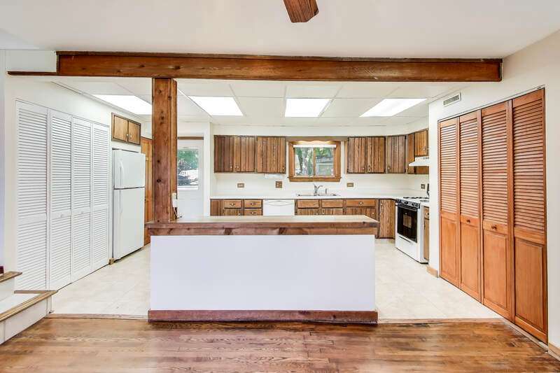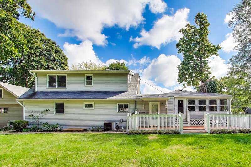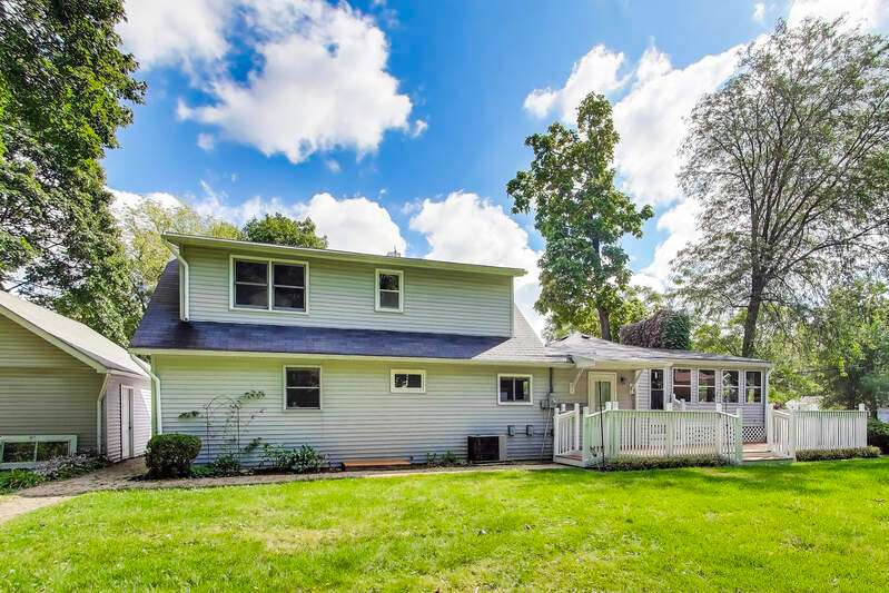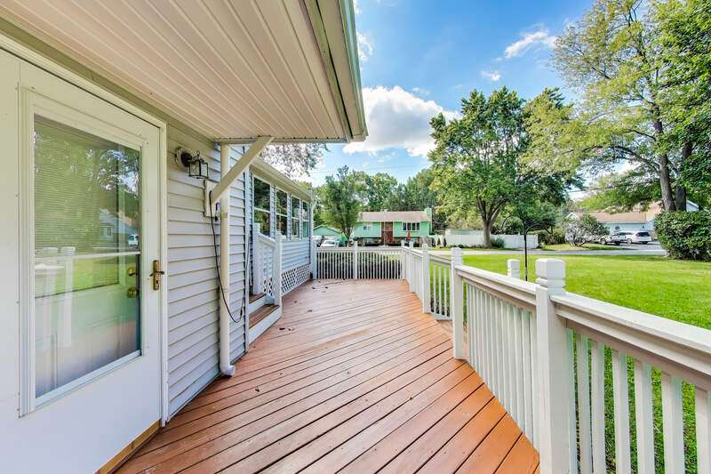 ADORABLE CAPE COD WITH TIMELESS CHARM! Beautifully maintained, move-in-ready home on a generous corner lot in a quiet neighborhood. This one-owner home blends character, comfort, and convenience. Inside, enjoy a freshly painted home with a mix of original hardwood floors, luxury vinyl plank, and cedar trim throughout. The cozy, sun-filled living room features an elegant arched doorway and hardwood staircase. A first-floor bedroom is ideal for guests or a home office, with an adjacent full bath. The open-concept dining room and kitchen feature wood cabinetry, a prep island, a pantry, and a dining space to enjoy family dinners. At the heart of the home is a spacious family room with rustic charm, a wood-burning fireplace, and a built-in firewood nook. Upstairs, the space offers a large owner's bedroom, a smaller third bedroom, and an updated full bathroom. Outdoor living includes a front porch, a three-season covered deck, and a newly stained deck overlooking nearly an acre with mature trees and a small creek. A large two-car detached garage adds storage. Located in the Gurnee school district with plenty of shopping, dining, parks, highway access, and Metra, this home is truly move-in ready!