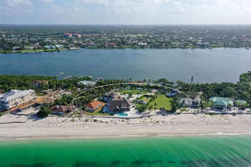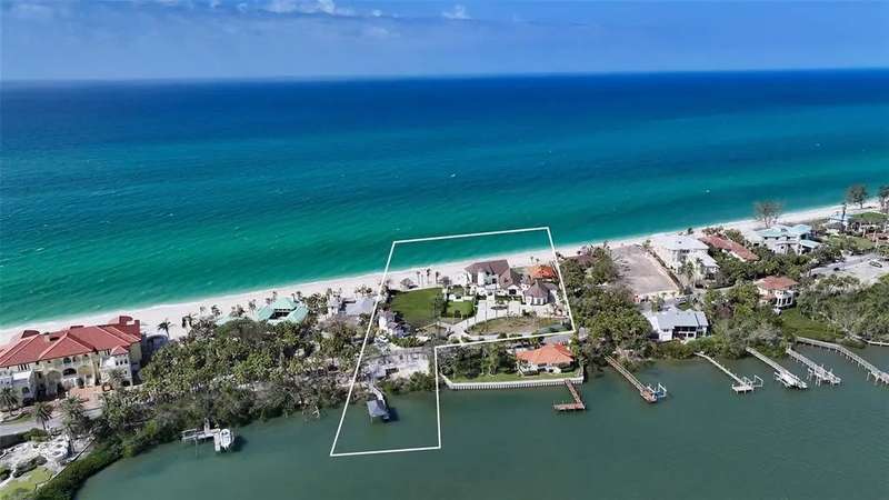 Introducing a rare and extraordinary opportunity to own one of the largest and most coveted properties on Casey Key. This sprawling 2.08-acre estate, featuring an impressive 300 feet of pristine Gulf of Mexico beachfront, is the epitome of coastal luxury. With exclusive Gulf-to-Bay access and 90 feet of Intracoastal Waterway frontage, this property offers unparalleled privacy and endless possibilities for those seeking the ultimate family compound or private retreat. Located in the highly sought-after Estates section of Casey Key, this property offers the best of both worlds: seclusion amidst nature’s beauty and proximity to Sarasota’s vibrant cultural scene. Known for its unspoiled, low-density charm, Casey Key is home to fewer than 400 residences and attracts celebrities, CEOs, and authors who value the island’s quiet elegance and convenient access to the mainland via bridges at both ends. The estate boasts a main residence along with two charming guest houses, providing ample space for family and friends. Expansive grounds set the stage for unforgettable gatherings and entertainment, while the private beach offers direct access to the Gulf’s sparkling waters. Enjoy breathtaking panoramic views from every angle, including a beach-front pool with an infinity edge—perfect for soaking in Florida’s sunset skies. The property also features a grandfathered-in covered boat dock with a 16,000-pound boat lift, offering direct access to the Gulf and Intracoastal Waterway for boating enthusiasts. For the discerning buyer, this estate presents a prime opportunity to renovate the existing structures or to design the home of your dreams, tailoring it to your exact vision. Whether you’re looking for a serene getaway, a legacy family home, or an entertainer’s paradise, this exceptional estate is ready to fulfill your aspirations. The main house was built in 1987, guest house #1 was built in 1977, and guest house #2 was built in 1990. Casey Key offers a rare blend of nature’s tranquility and unparalleled access to Sarasota’s world-class amenities. Live the life you’ve always dreamed of in a one-of-a-kind coastal sanctuary. Don't miss your chance to own a piece of paradise on one of Florida’s most desirable barrier islands.