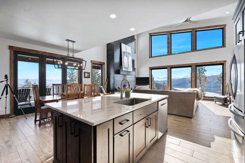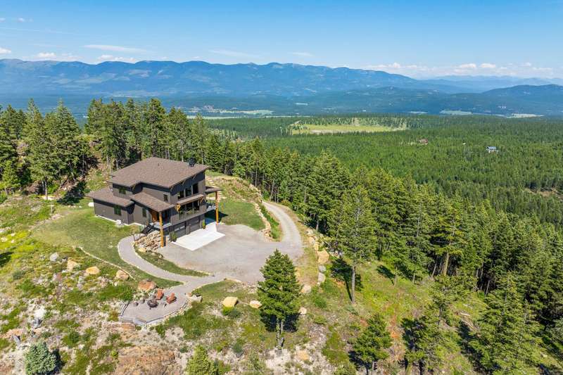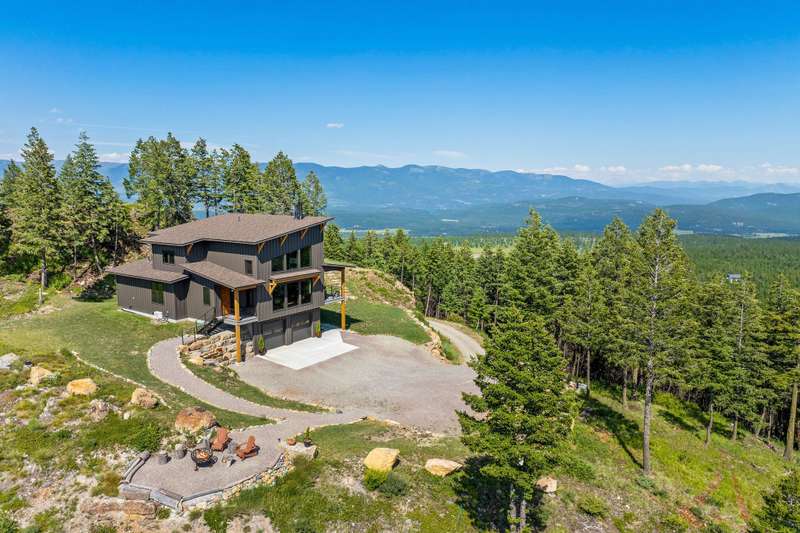 The Sanctuary at Highland Meadows offers unparalleled views and a unique opportunity for privacy in Whitefish, Montana. Unbelievable 360-degree views of the Whitefish Range, Whitefish Mountain Resort, Mt. Stimson and Mt. Pinchot in the heart of Glacier National Park, the Great Northern Mountain, Columbia and Swan Mountains all the way to Flathead Lake. The only home known to have a view of adjacent Tally Lake, the deepest lake in Montana and surrounded by U.S. Forest Service lands. Situated on top of one of the highest points in Whitefish on 40 acres surrounded by U.S. Forest Service lands, this Mountain Modern designed home is at the top of a small, gated enclave of homes in the Highland Meadows community, a short drive from Whitefish with year round access. The home sits at the end of a nearly mile long, gradual sloped driveway fully plowed and maintained by the HOA. With Round Meadows Cross Country Ski area across the street and a neighborhood trail to Tally Lake, it's the perfect location for all outside activities or just taking in the views. The newly constructed high efficiency home has 2,500 square feet of living space, 3 bedrooms, 3.5 baths, full length covered porch with outside fireplace looking towards the Whitefish Range, Glacier National Park and the Great Northern Mountain. A spacious two-bay tandem garage with room for three cars, or two cars and ATV, snowmobiles, etc. Both bays have electric vehicle charging ports. The garage is already outfitted with tool storage racks, work benches and a downstairs office with TV. The home was designed to maximize views with large great room windows overlooking Tally Lake and bedrooms facing east or west for sunrise or sunset. The large Great Room with vaulted ceiling has a 40,000 BTU wood burning fireplace framed in hot rolled steel that can heat the entire home. The energy efficient home uses a high efficiency boiler that heats all three levels with super cost effective and quiet, healthy radiant heat. One of the deepest wells in the region supplies a sophisticated water system that includes a 1,000-gallon cistern, water softener, cartridge filtration system and ultraviolet purification prior to entering for domestic use water. LED lighting throughout the home, including stairway and under cabinet lights. Maximum urethane foam insulation in ceiling areas and high efficiency windows ensure some of the lowest energy costs to heat a home in the area. The placement of windows and roof design facing south to southwest yields a passive airflow in the summer months and an opportunity to place solar panels on the roof to be completely off any power grid needs. Meanwhile, a full house Generac generator always ensures power. Electric power is buried for most of the distance to the house from the lower reaches of the Highland Meadows community. The house was also designed to minimize maintenance and upkeep with Bridger Steel siding on the entire exterior/soffits and wrap around decking. Steel railing and treads on all exterior areas and interior steel railings provide secure, no maintenance finishes. The home has a wireless SimpliSafe security system, Wi-Fi thermostats with 4 Energy efficient radiant heat zones on all 3 levels, Wi-Fi level monitoring on a 1,000-gallon propane tank and currently connected to Starlink for internet and television or can be switched to Montana Sky with a point of sight connection to their tower on Big Mountain. In Montana, it's all about being outside either on the full length covered porch with outside fireplace or on a beautiful overlook/fire pit area facing the sunset and Tally Lake. A short path from the house leads to an adjacent ridge that has yields 360 degree views and excellent sunrise/sunset views with no points higher for miles. The property sits on two 20 acre tracts. One tract could be developed with another homesite or sold separately. What the owner loves about this home --Incredible views, complete quiet, ultimate privacy. Feels like you