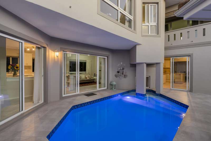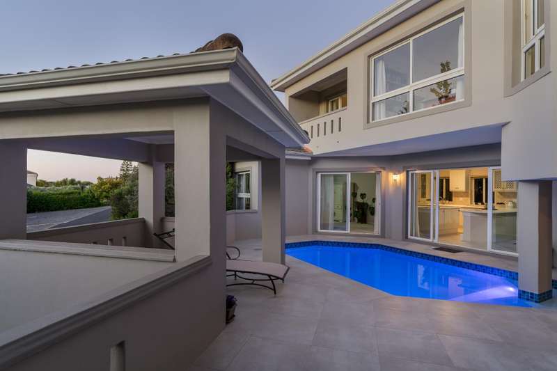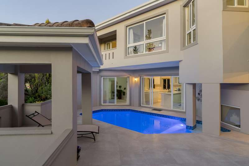 Exclusively marketed by Team Pieter Kotze Dual living home with Staff quarters. Practical and spacious dual-living home, ideal for larger families, extended family living or generating rental income, with separate staff accommodation. Right wing: Large open-plan kitchen and dining area that flows into the living room and out onto a covered patio. Upstairs is a generous bedroom enjoying lovely views of the Hottentots Holland mountains and Table Mountain in the distance. Left wing: The kitchen and living area also open onto the same patio and pool. Upstairs you?ÇÖll find a pajama lounge towards the Atlantic ocean, two bedrooms that share aa bathroom, and a north-facing main bedroom with a walk-in wardrobe and a full en-suite. There is 3 garages with a workshop and potential space to add a 4th garage. Bel'aire Winelands Estate is situated in a prime location, only 5 minutes from Waterstone village & Somerset College, 20 minutes from Stellenbosch and 35 minutes from Cape Town International airport
