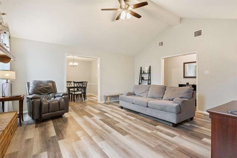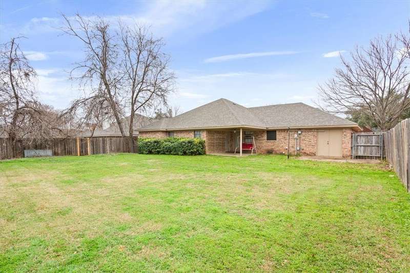Welcome to this inviting 3-bedroom, 2-bathroom home nestled in the desirable China Spring ISD, just seconds from Lake Waco Golf Course. This well-maintained home features a wood-burning fireplace and stylish laminate wood-look flooring throughout the main living areas, creating a warm and welcoming atmosphere. The galley-style kitchen is designed for both functionality and style, offering a built-in cooktop, oven, and dishwasher, along with an eat-at bar and breakfast area for casual dining. A separate formal dining room just off the kitchen provides additional space for entertaining. The primary bedroom has dual closets and an en-suite bath with dual vanities, a relaxing garden tub, and a separate shower. The two additional bedrooms are spacious and share a well-appointed second bath. Step outside to enjoy the covered patio and privacy-fenced backyard, perfect for outdoor gatherings or quiet evenings. A two-car front-entry garage adds convenience and extra storage. Located in a sought-after area near shopping, dining, and recreational amenities, this home offers comfort, style, and an unbeatable location. Schedule your private tour today! $324,900