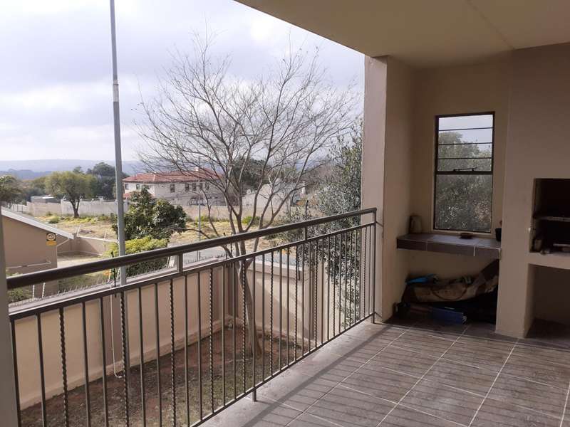 Spacious 3 Bedroom Apartment with Pool and Security Welcome to your dream home! This second-floor apartment boasts three bedrooms, two bathrooms (MES with shower and second with bath), and a separate guest toilet, providing ample space for your family and guests. Enjoy the convenience of double covered carports and 24-hour security for peace of mind. Relax and entertain on the covered balcony featuring a built-in braai, perfect for those summer days with scenic views. The spacious lounge flows seamlessly onto the balcony, offering a cozy retreat or an ideal space for small gatherings. A small dining table will fit in the open plan area. The well-sized kitchen is a chef's delight, with an electric hob and oven. There's plenty of room for a single-door fridge and one water appliance, making meal prep a breeze. Take advantage of the complex's sparkling pool for a refreshing dip on hot days. Whether you're looking for comfort, convenience, or security, this apartment has it all. Fiber-ready for easy connectivity. Rent of R8400 Excludes utilities. Available from 1 September 2025. No Pets allowed.
