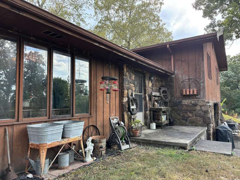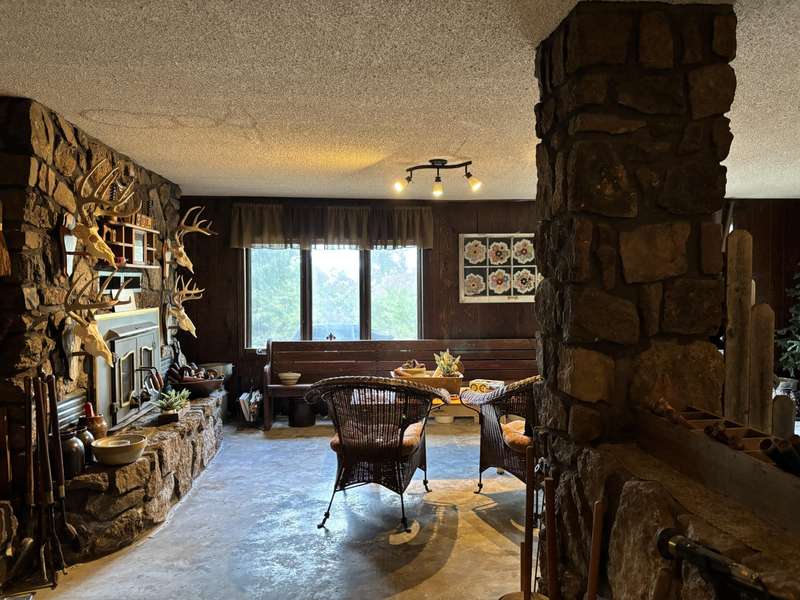 Tucked away on 10 private acres, this country home blends rustic charm with comfortable living. Endless potential ready for a buyers personal touch. Featuring 5 bedrooms and 2 bathrooms, the home offers 2 separate living areas. Unique character details include beautiful rock columns and a wrought iron stair case. The expansive property provides endless opportunities for gardening, recreation, or simply enjoying the quite countryside. With the combination of space, charm, and land, this home is perfect for those looking for a serene retreat and a home they can implement their style in.