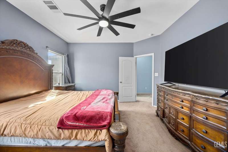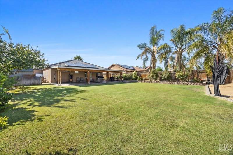 Come take a look at this beautifully maintained 5 bedroom 2 bathroom newer built home with an amazing solar system. These 5 spacious bedrooms paired with the 10,000 plus size lot is a must see. The beautiful backyard rose bushes, lush green grass and 10 different fruit trees, Plum, apricot, Mexican lime, Persian lime, white peach, honey crisp apple, and a combination pear tree with with 4 different pear types in one tree to name a few! Enjoy all of this one your newly built extended patio with upgraded outside flooring. This home you don't want to miss!