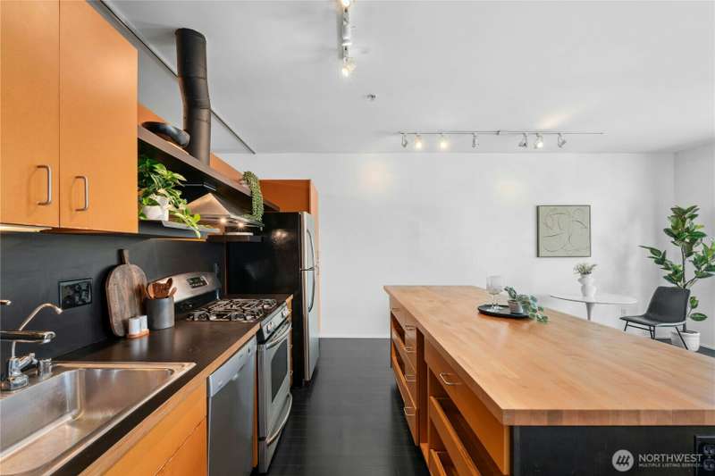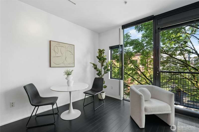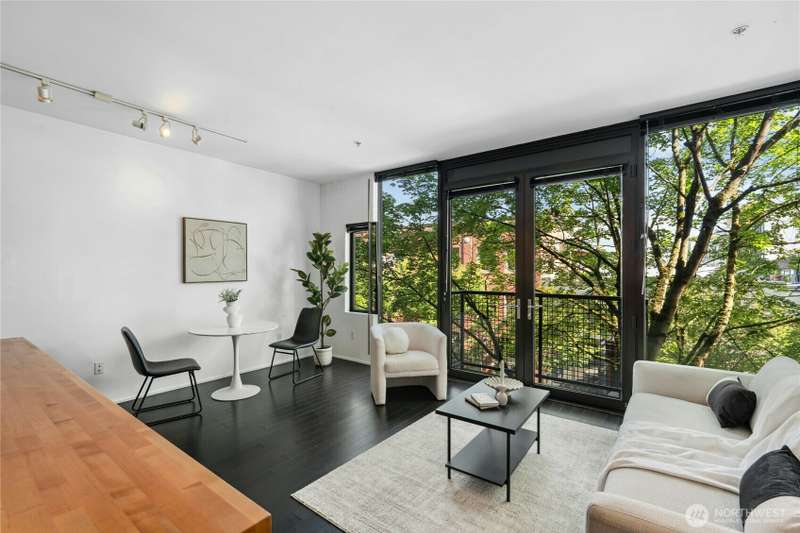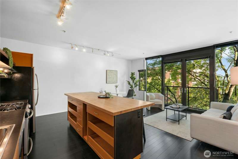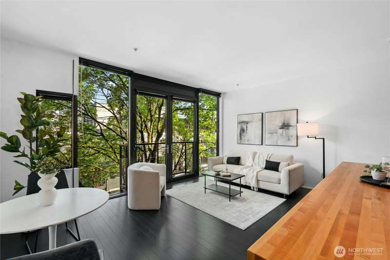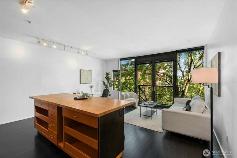 Set in Capitol Hill’s energetic Pike/Pine corridor, this design-forward 1BR by renowned architect Tom Kundig offers a rare blend of texture, light + livability. Warm bamboo floors + an origami-style sliding wall shape the adaptable interior, while floor-to-ceiling windows and a balcony framed by greenery provide natural serenity amid the city’s rhythm. The kitchen features a custom island & gas cooking, while the bath stands out with heated floors and a large walk in-shower w/bold designer tile. In-unit W/D, secure garage parking spot, + rare 2 storage units. No rental cap, FHA/VA approved, pet-friendly. Rooftop deck for grilling, lounging + skyline/mountain views. Dining, nightlife, parks, groceries + light rail all just moments away.