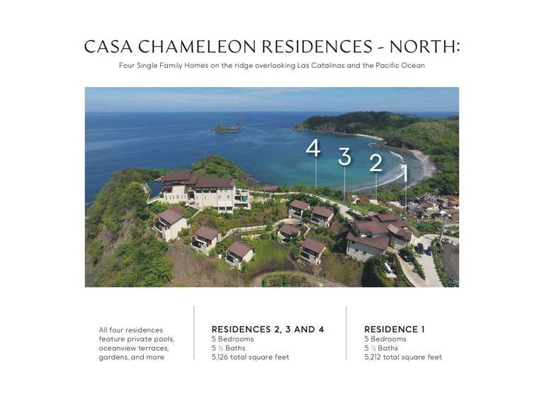 The Casa Chameleon Residences at Las Catalinas offer an exclusive opportunity to own a luxury 5-bedroom, 5.5-bathroom villa perched above the Pacific Ocean. These fully furnished homes, ranging from 5,126 to 5,212 sq ft, blend world-class architecture with the natural beauty of Costa Rica's coast. Each villa features expansive indoor-outdoor living, panoramic views, and full access to the award-winning Relais & Chateaux Casa Chameleon Hotel's services—including concierge, housekeeping, and a professionally managed rental program. Located in the vibrant, walkable beach town of Las Catalinas, these residences provide effortless ownership and true Pura Vida living.