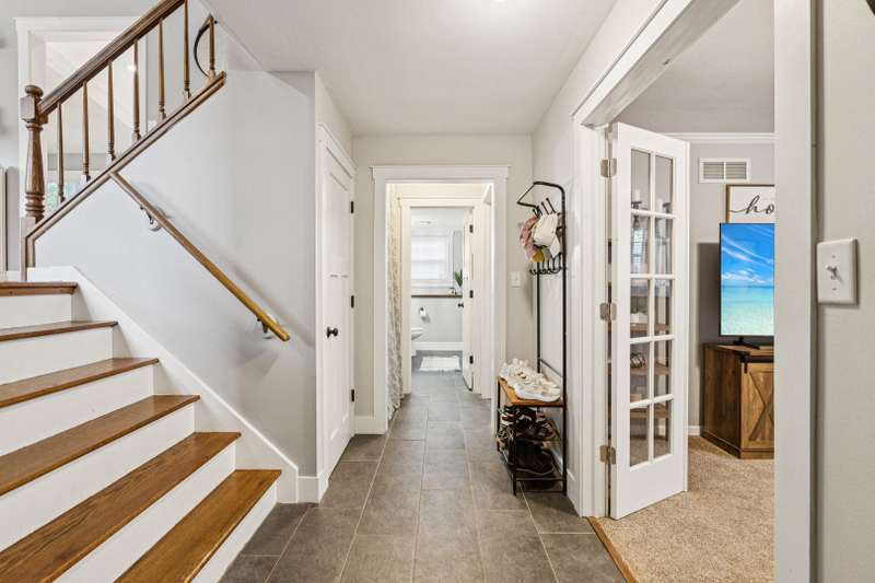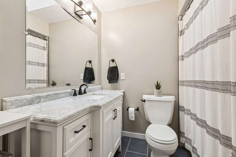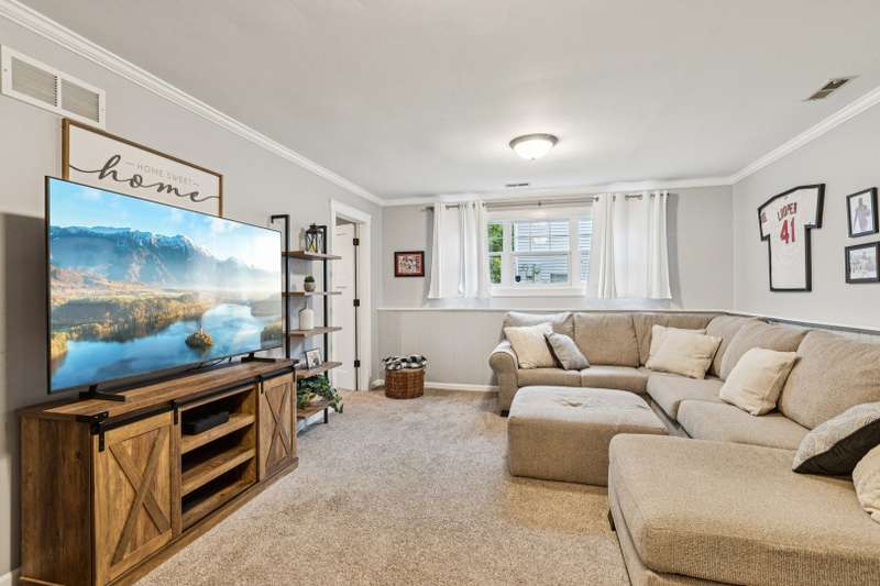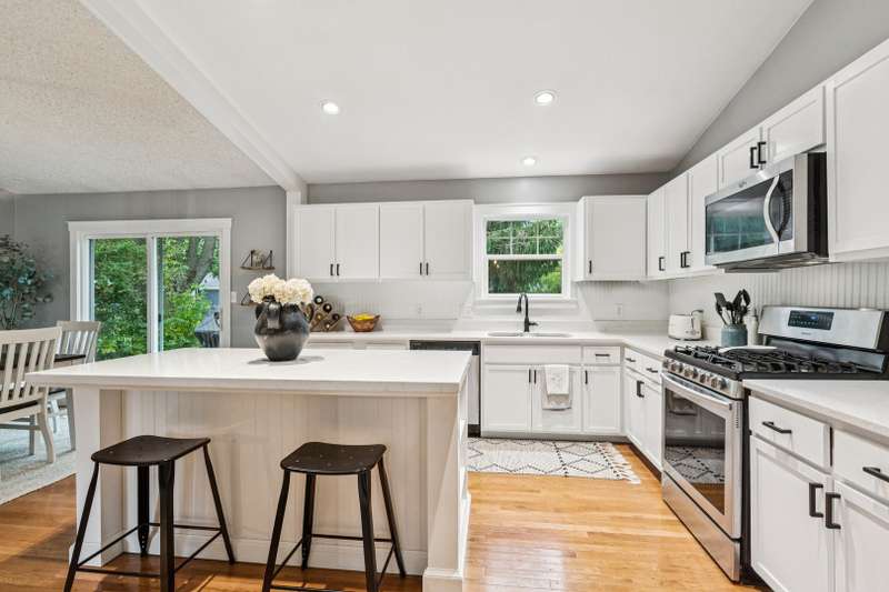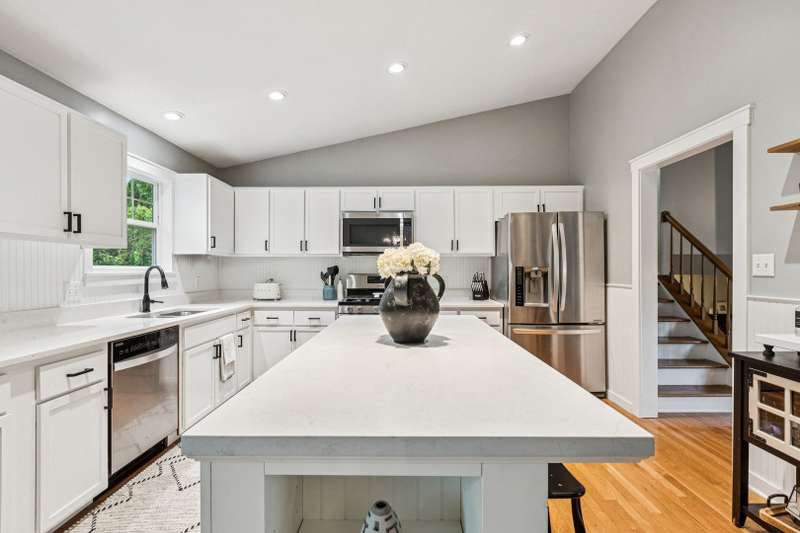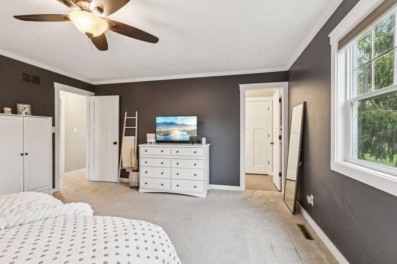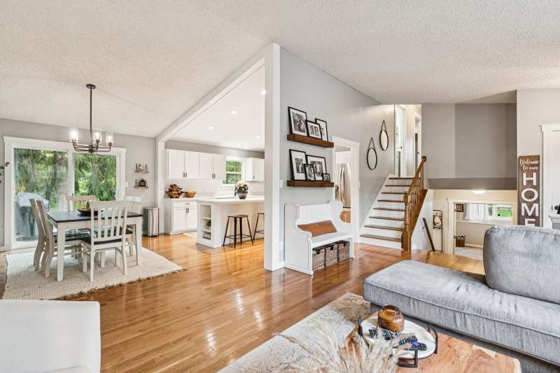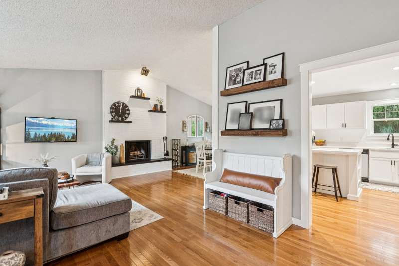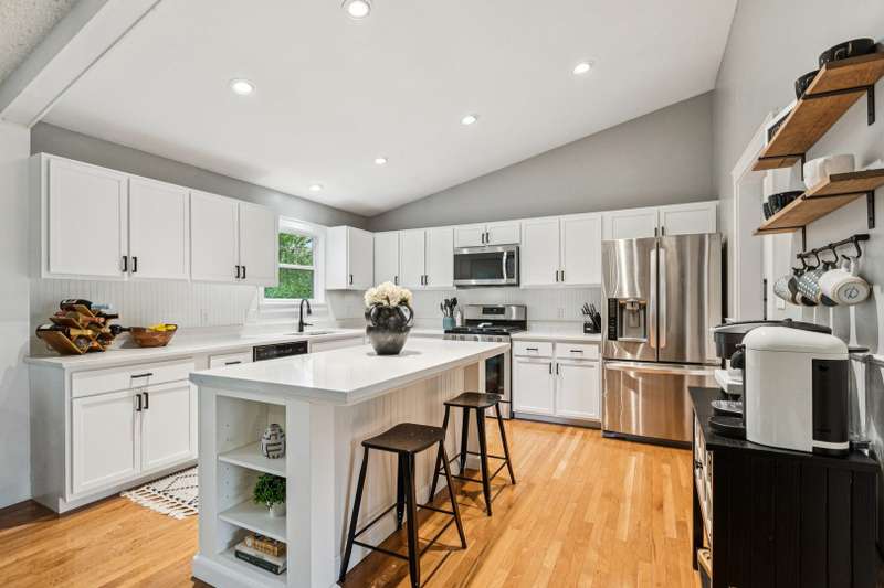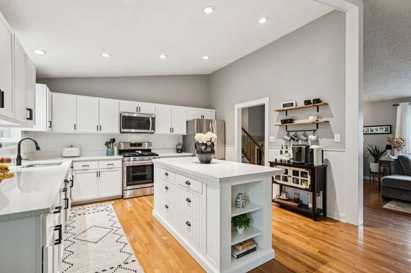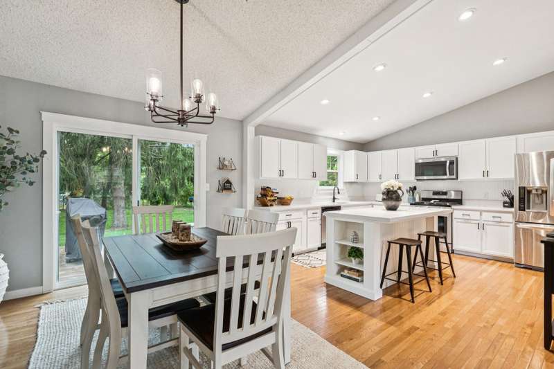 So charming and spacious, this Batavia home is full of character and thoughtful updates that will capture your heart! From the vaulted and beamed ceilings to the rich hardwood floors, board & batten accents, subway tile, and stylish light fixtures, every detail shines. The expansive kitchen is a showstopper with a vaulted & beamed ceiling, center island, stunning quartz counters, coffee bar area, and stainless steel appliances. The adjoining eating area overlooks your deck, tree-filled fenced backyard, and family room-perfect for everyday living or entertaining. The vaulted family room features a floor-to-ceiling wood-burning fireplace, creating a warm and inviting centerpiece. Retreat to the master suite with crown molding and an updated master bath featuring beautiful tile, a modern vanity, and stylish lighting. Additional bedrooms, a hall bath with skylight and subway tile, and a linen closet complete the upper level. The finished lower level offers a second family room with French doors and bonus flex space ideal for an office, gym, or playroom. The mudroom is updated with tile and coat hooks, while the laundry room boasts cabinetry, a sink, and ample storage. A beautifully updated powder room with oversized tile and a furniture-style vanity adds extra convenience. Enjoy the large 2+ car garage and a fenced backyard surrounded by mature trees for privacy, with a deck perfect for relaxing or entertaining. Ideally located just one mile from the high school, a block from the elementary school, close to downtown Batavia, and near Randall Road, this home truly has it all. Welcome home!