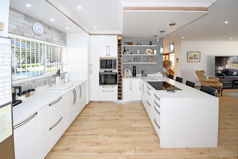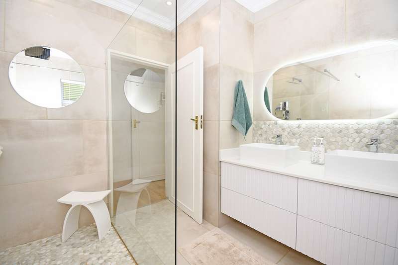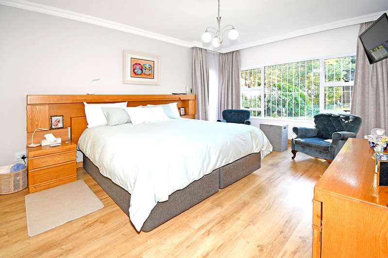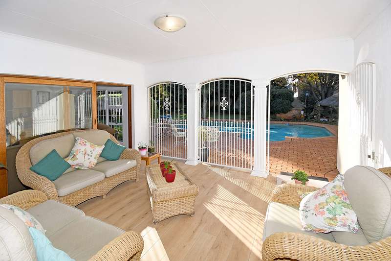 A hidden Oasis where the emphasis is on quiet living, comfort and entertainment versatility. Step into this beautifully maintained family home where natural light and open plan living seamlessly combines the family room, dining room and contemporary kitchen which blends itself to intimate family living and entertaining. The kitchen is a standout feature with sleek white quartz counter tops, grey accents, waterfall breakfast island and built-in appliances. An inter-leading scullery provides extra cabinetry, double basin, space for additional appliances. A separate formal lounge offers an intimate ambiance which opens onto the covered patio overlooking the pool in a children's paradise garden with an entertainment Lapa and built-in braai. The bedroom wing offers four spacious bedrooms,2 modern bathrooms. The luxurious main bedroom with a walk-in -closet and private bathroom opens onto the garden. Double garage, double carport, domestic accommodation, water tank, CCTV cameras, electric fence. In a sought after access controlled enclave of Bedfordview, this home offers Exceptional value.