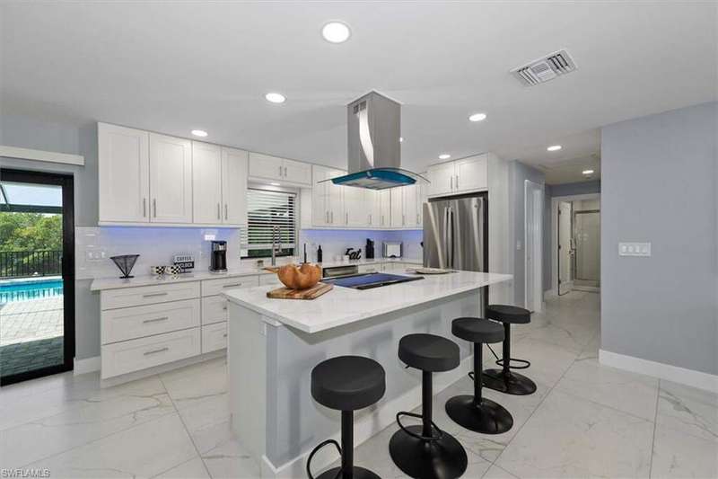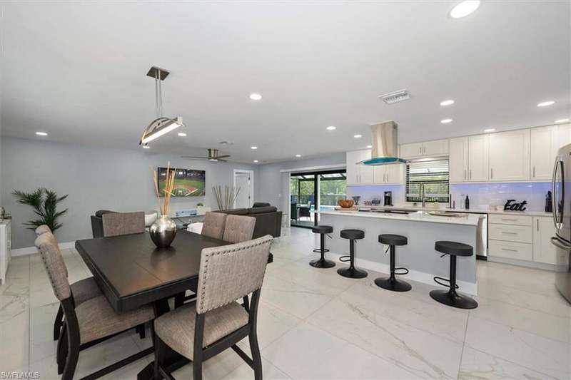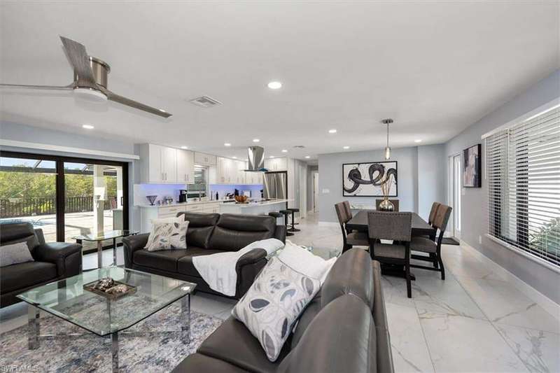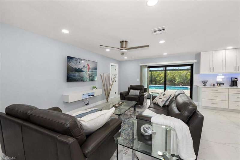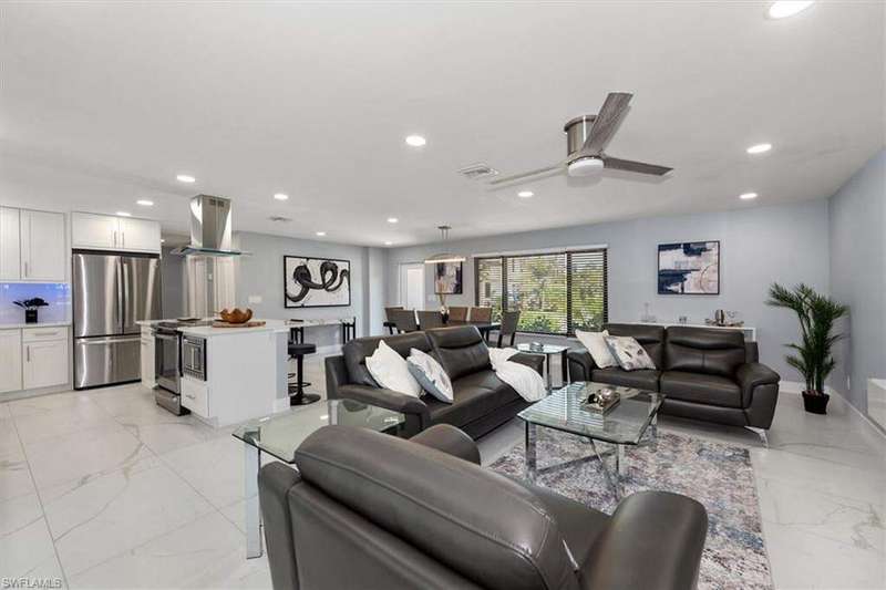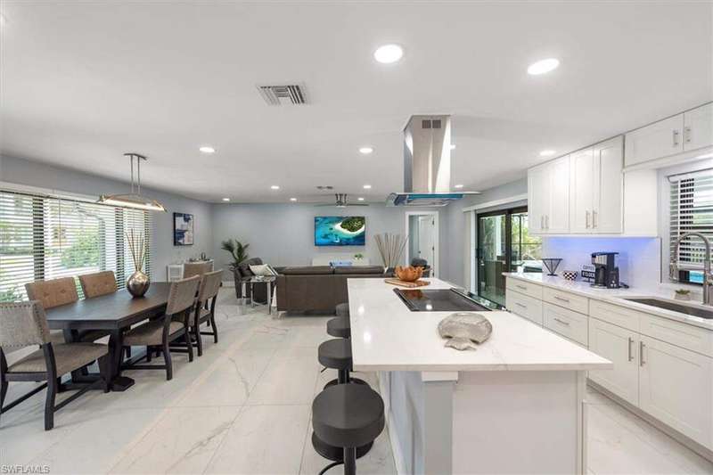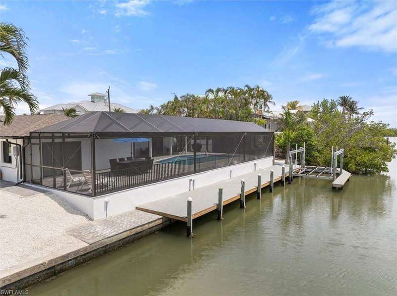 SELLER SAID GET IT SOLD WITH THIS LARGE PRICE REDUCTION! Only 3 houses from Estero Bay, this 4/3/2 turnkey direct Gulf access pool home has been meticulously remodeled inside and out. The interior of the home features the desired split floor plan, modern marble tile throughout, neutral contemporary finishings and an open floor plan. Solid wood white cabinetry, stainless appliances and Island range hood, stunning quartz counters and a large Island begin the list of kitchen attributes. The primary bedroom boasts a large custom closet and ensuite bathroom with dual sinks and custom tiled walk-in shower. With 3 additional bedrooms and 2 guest bathrooms, there is plenty of room for your family and friends. The covered lanai and pool area not only has a large under truss seating area but ample seating under the sun as well, where you can watch the manatee, dolphin and wildlife through the picture window pool cage. Park your boat on your private dock and lift only steps away to enjoy fishing, boating and exploring all of SW Florida. This residence is perfect for boater enthusiasts and Beach lovers alike!