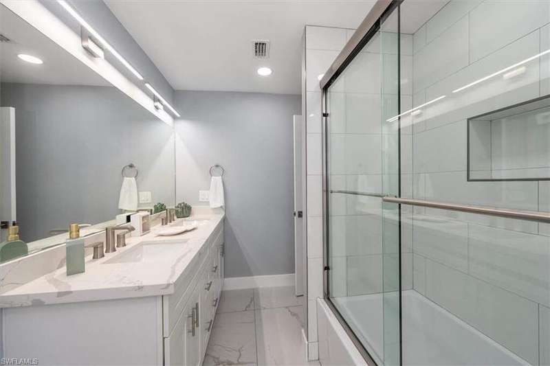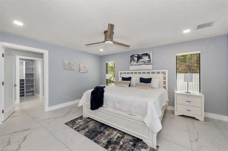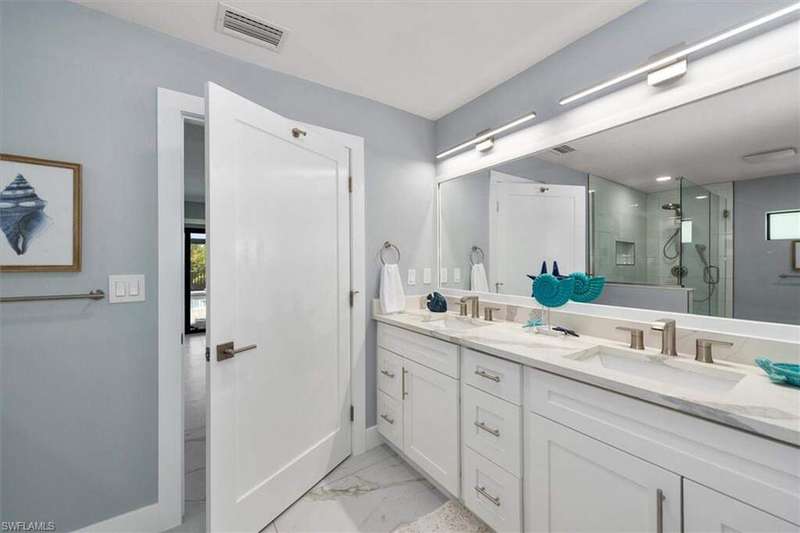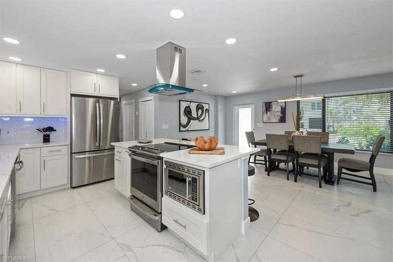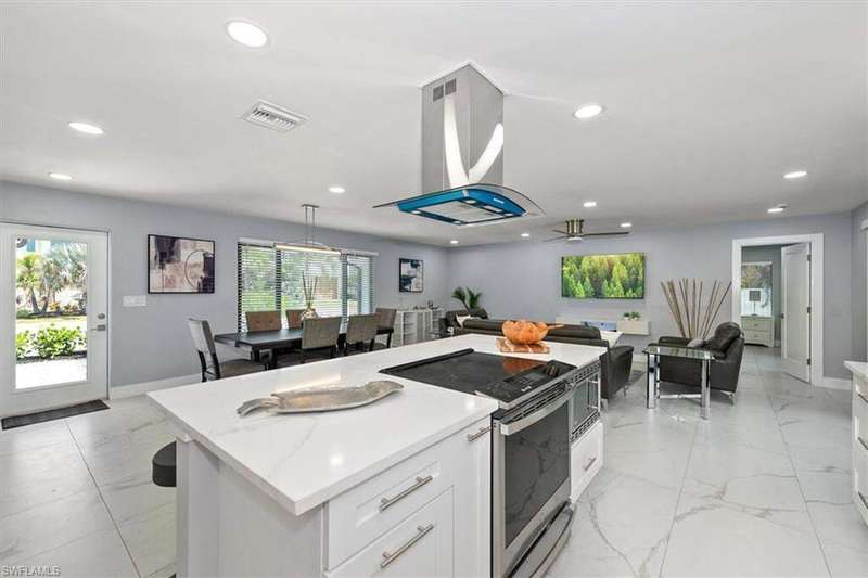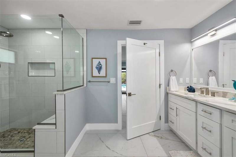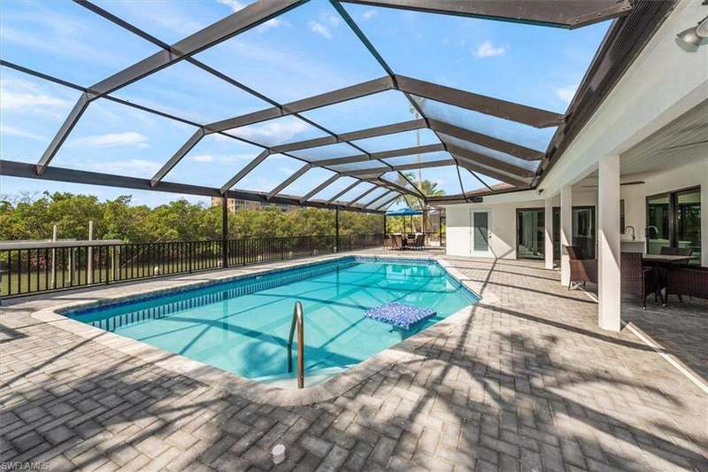 SELLER SAID GET IT SOLD WITH THIS LARGE PRICE REDUCTION! Only 3 houses from Estero Bay, this 4/3/2 turnkey direct Gulf access pool home has been meticulously remodeled inside and out. The interior of the home features the desired split floor plan, modern marble tile throughout, neutral contemporary finishings and an open floor plan. Solid wood white cabinetry, stainless appliances and Island range hood, stunning quartz counters and a large Island begin the list of kitchen attributes. The primary bedroom boasts a large custom closet and ensuite bathroom with dual sinks and custom tiled walk-in shower. With 3 additional bedrooms and 2 guest bathrooms, there is plenty of room for your family and friends. The covered lanai and pool area not only has a large under truss seating area but ample seating under the sun as well, where you can watch the manatee, dolphin and wildlife through the picture window pool cage. Park your boat on your private dock and lift only steps away to enjoy fishing, boating and exploring all of SW Florida. This residence is perfect for boater enthusiasts and Beach lovers alike!