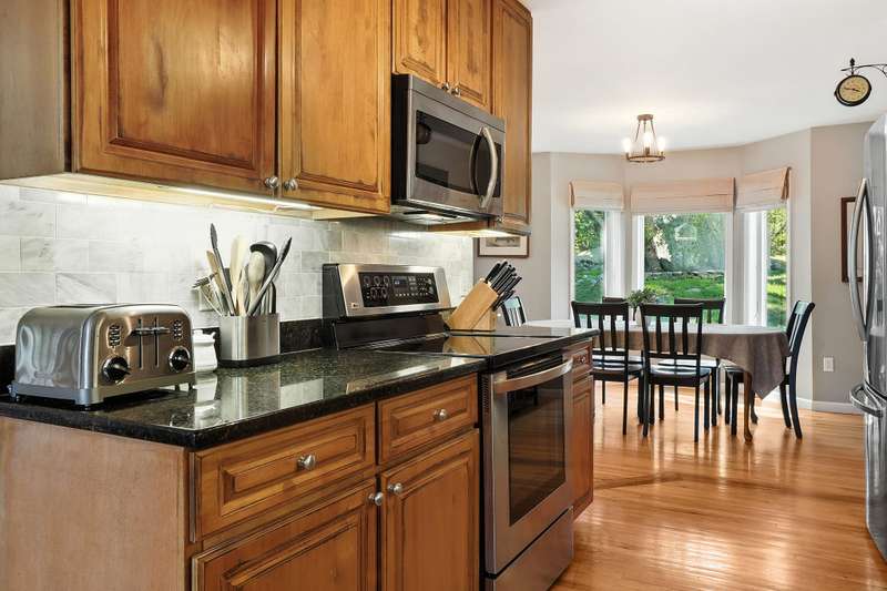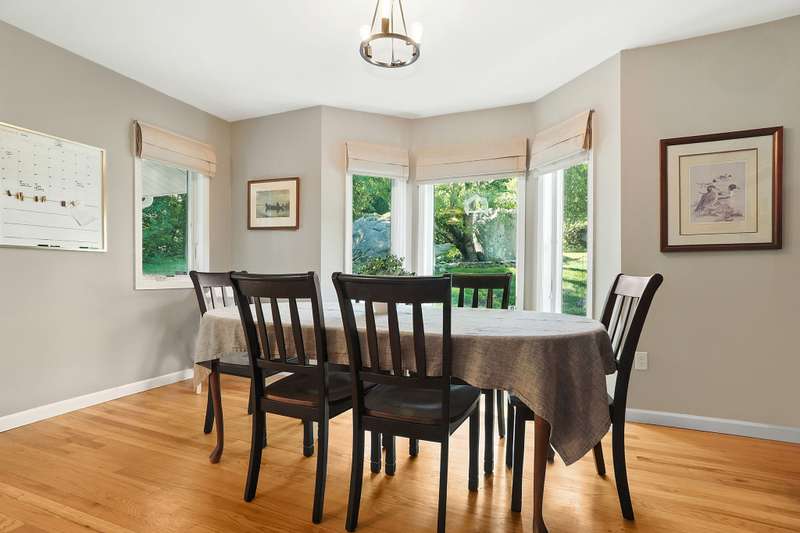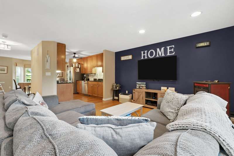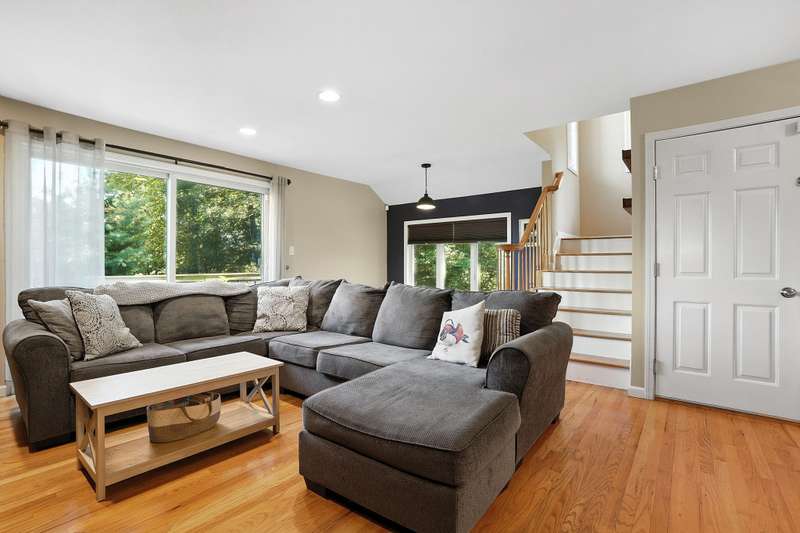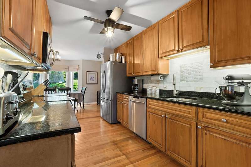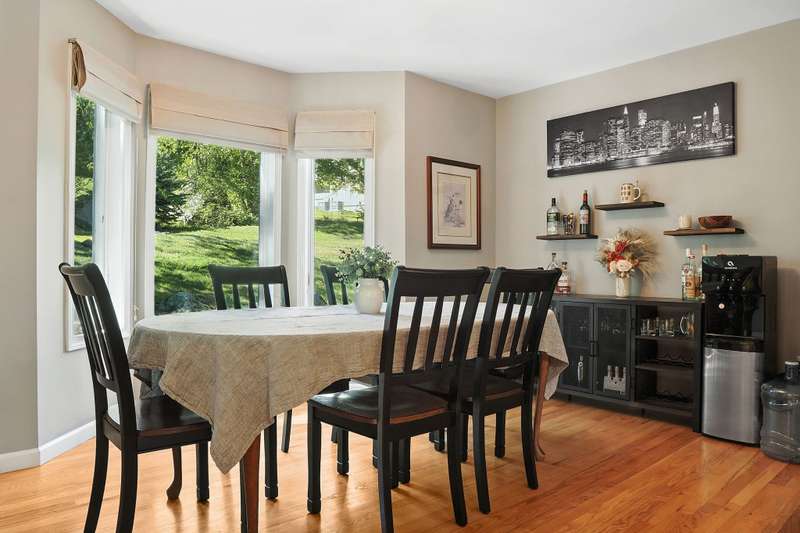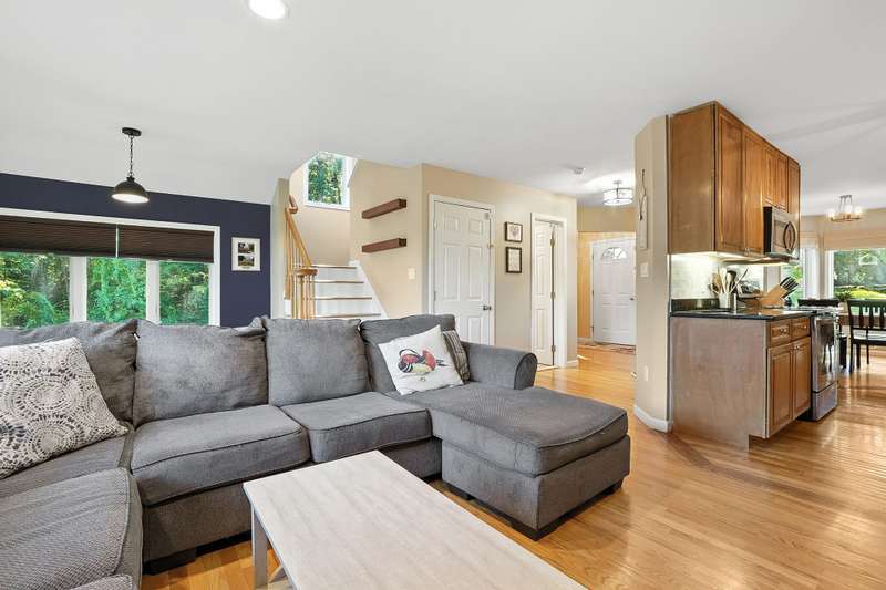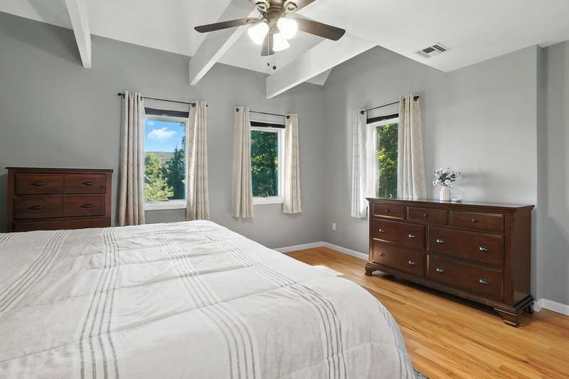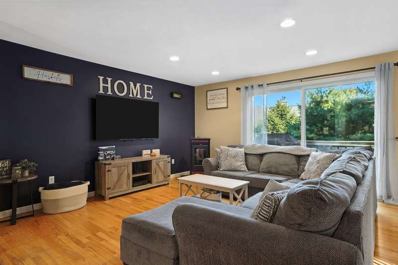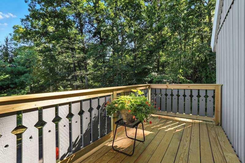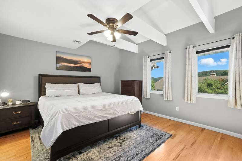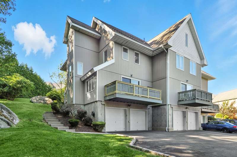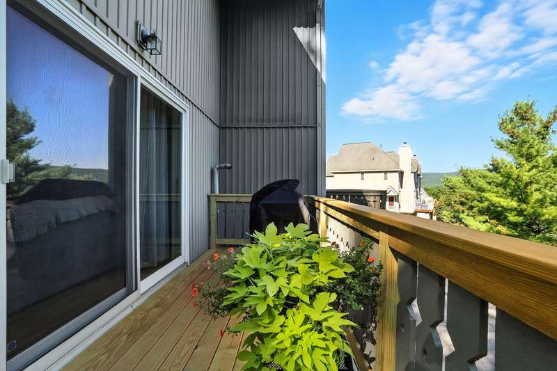 Bright End-Unit Townhouse with mountain Views in Corbin Hill offers privacy, abundant natural light, and generous living space. Hardwood floors run throughout both levels, and the kitchen is designed with plentiful cabinetry, granite countertops, and stainless steel appliances. A bay-windowed dining room anchors one side of the kitchen, and on the other side a expanded living room features a pellet stove and opens to a newly rebuilt oversized deck with mountain views. Upstairs, the primary suite features vaulted ceilings, a second bedroom with double closets and a full bath complete the level. Laundry is conveniently located on the same floor.The two-car garage has a bonus room for storage or flexible use. Well-maintained and move-in ready, this home offers comfort, functionality, and a highly desirable location.