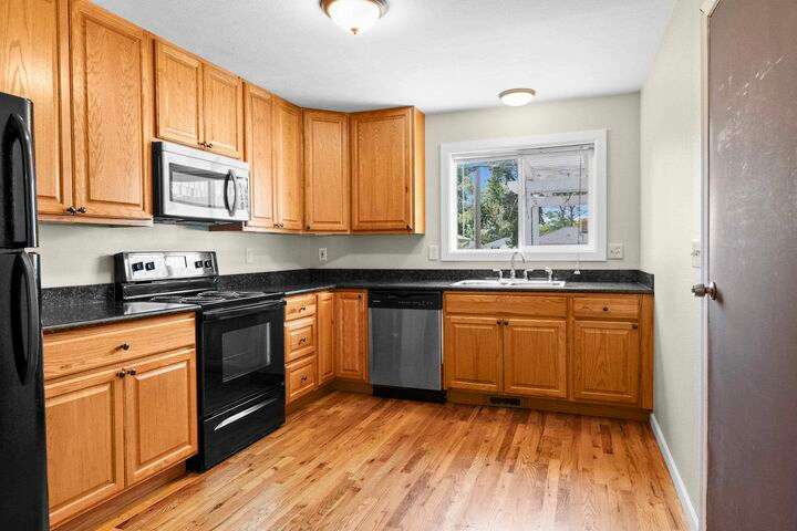 Move right into this well maintained 4 bedroom, 2 full bathroom, Shadle home. Bedroom downstairs could be a primary suite or family room, non-egress window. The home has updated kitchen and bathrooms with granite countertops! Primary bedroom has walk-in closet, own bath with double sinks. Double car garage too with garage door opener. Covered back deck.