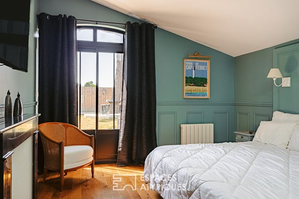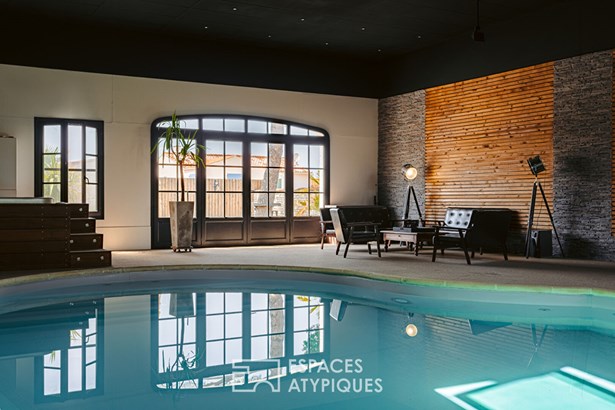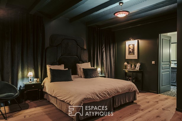 The tour continues with a major surprise: a large converted room houses an indoor pool and a jacuzzi, adding a rare dimension to this characterful family home. Completely independent, the fifth and final suite is located here, comprising a remarkable bedroom, a dressing room, a bathroom, and a toilet.