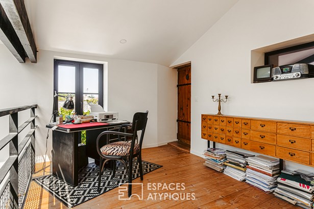 This charming building offers a total surface area of ??371 m2 and offers a remarkable setting. A welcoming patio and a planted area lead visitors through a large entrance hall with large windows opening onto the living room, impressive for its high ceilings and exposed stonework.