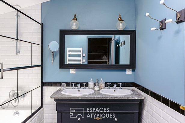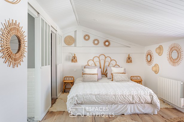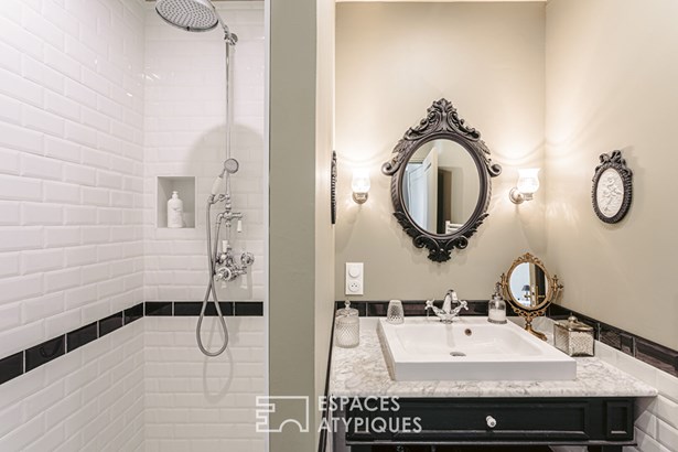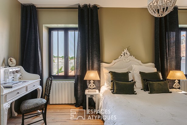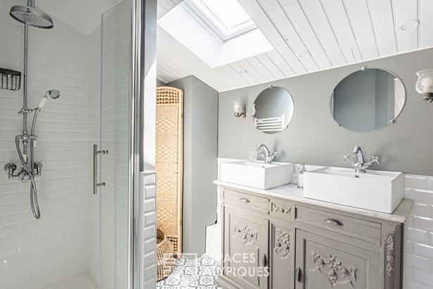 On the first floor, two other suites stand out: the first, decorated in a romantic style with soft hues, features a shower and washbasin, and the second, under the eaves, also features its own bathroom and toilet.