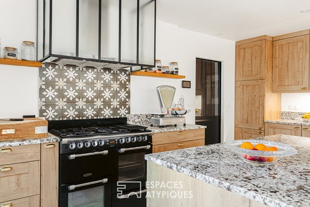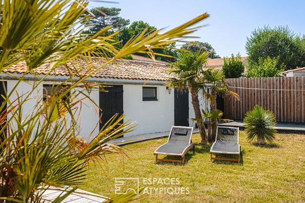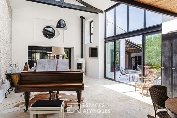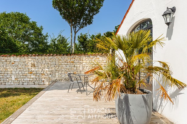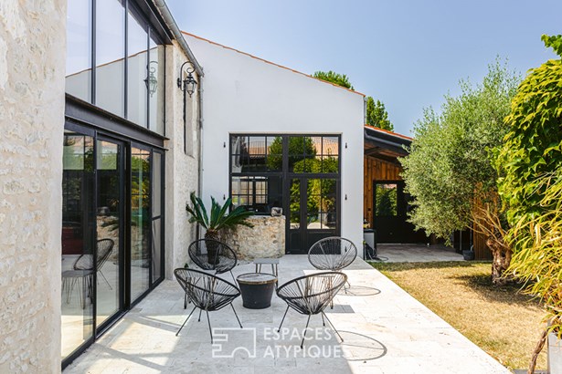Discreetly hidden behind a sober facade, this former farmhouse, fully renovated with high-quality features, nestles in the heart of a sought-after village, in a charming town north of La Rochelle.