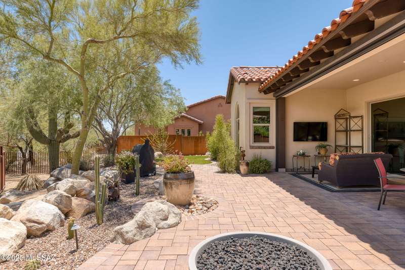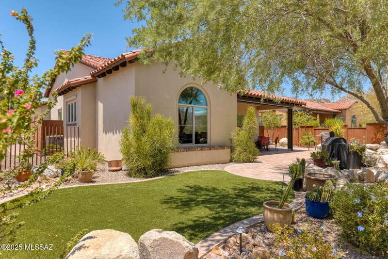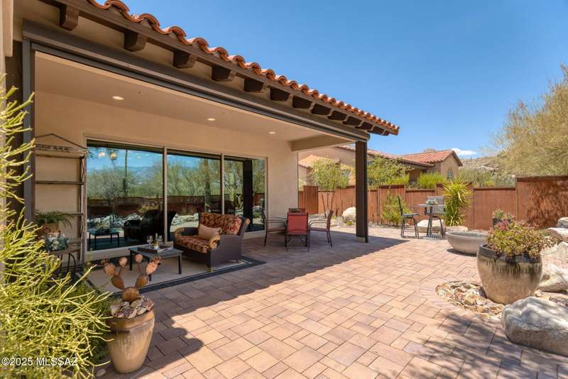 Fabulous 1,942 SF (3BD, 3BA) golf casita with Catalina Mtn views and lovely fully fenced yard in The Stone Canyon Club one of the USA's most desirable residential golf communities! Available mostly furnished, this delightful villa is highly upgraded and customized. Open great room design also enjoys a large covered patio that can be fully enclosed with auto rolling shades for cooler summer and warmer winter enjoyment. Beautifully landscaped and snake proofed yard includes gas firepit, artificial turf area, lovely landscaping and extensive paver patio areas. You'll appreciate the close location to the Clubhouse (marvelous restaurant) and Fitness Center (2 pools, spa, pickle ball & tennis courts, plus great exercise equipment). Ideal winter home with championship golf! Golf Membership Req'd