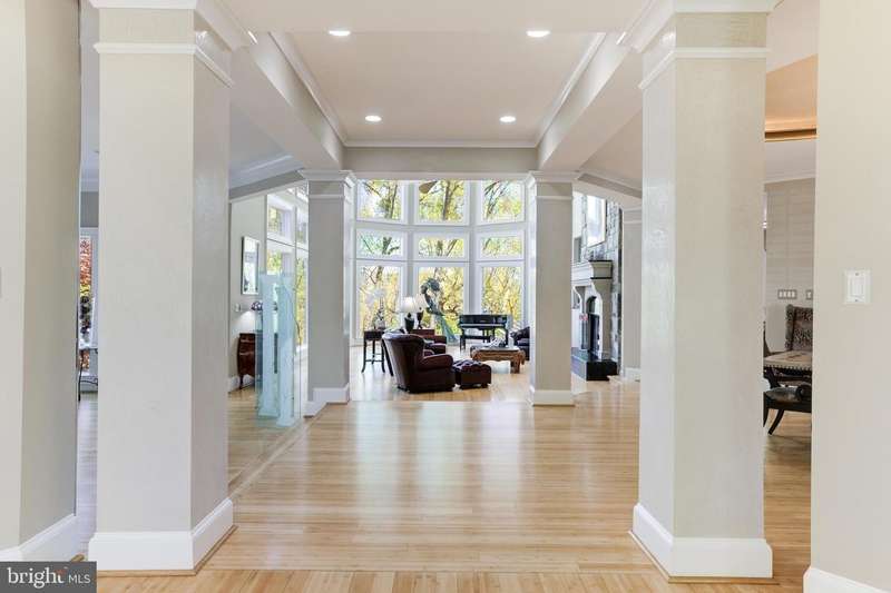 Commanding an incomparable vantage point above the Potomac River, this extraordinary stone estate by BOWA defines timeless sophistication and total privacy on more than three gated acres in McLean's most coveted enclave, moments from Washington, D.C. Beyond its stately approach and manicured grounds, the residence reveals over 16,000 square feet of refined interiors designed for both grand entertaining and serene daily living. A two-story great room with floor-to-ceiling windows frames sweeping river views, while French doors open to an expansive terrace that captures the tranquil beauty of the surroundings. The gourmet kitchen is a showpiece with professional-grade appliances, granite surfaces, a walk-in pantry with Sub-Zero refrigerator, and a hidden bar. The main level also offers dual offices, two powder rooms, elevator access, and a full laundry with pet bath-all under soaring ceilings that enhance light and volume. The main-level owner's suite is a private sanctuary with windows on three sides, dual dressing rooms, and a marble spa bath with jetted tub, steam shower, and private balcony overlooking the river. Upstairs, three guest suites each feature walk-in closets and elegant baths, two with French doors to balconies. The lower level is a destination in itself-featuring a lounge with stone fireplace, billiards area, wet bar, wine cellar, fitness room, and a stunning indoor pool with skylights and glass doors opening to extensive stone patios. Additional amenities include a private in-law or staff suite with full kitchen, a salon, guest suite, and generous storage. Outside, terraced gardens, pergolas, water features, and a gazebo with full outdoor kitchen create a breathtaking resort-style setting. With five-car garage parking, geothermal systems, and whole-house generator, this distinguished estate offers rare scale, craftsmanship, and uninterrupted Potomac River views.