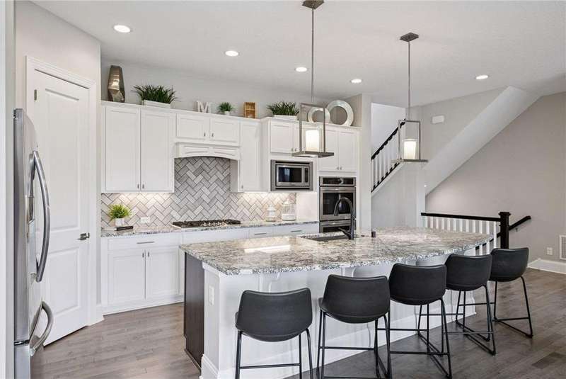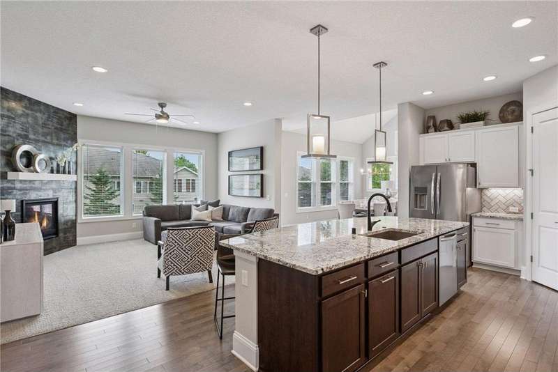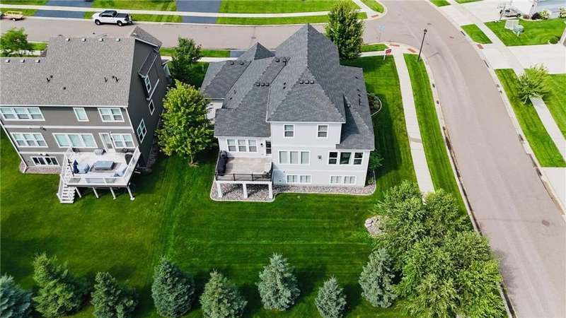 This impeccably maintained home is designed to impress—truly shows like a model! The gourmet kitchen is a chef’s dream, featuring a 10’ foot island, stainless steel appliances including double ovens, a walk-in pantry, and plenty of prep space for cooking and entertaining. The adjacent vaulted dining room provides an elegant setting for holidays and special gatherings. The main-floor Owner’s Suite offers a luxurious retreat with a walk-in tile shower, heated floors, dual vanities, generous storage, and a spacious walk-in closet. Upstairs, you’ll find a Junior Suite along with two additional bedrooms and a shared full bath. The fully finished lower level offers even more living space with a fifth bedroom, a large family room, a game room, and abundant storage throughout. From the dramatic two-story entry to the 10’ foot ceilings on the main level and 9’ foot ceilings below, every space feels open and airy. The heated garage is a standout feature with epoxy floors, hot and cold water hookups, and soaring 13.5’foot ceilings—ideal for a workshop or extra storage! NEW Elementary school coming soon (NE of the home located on 101st Avenue and Troy Lane) and Maple Grove High School.